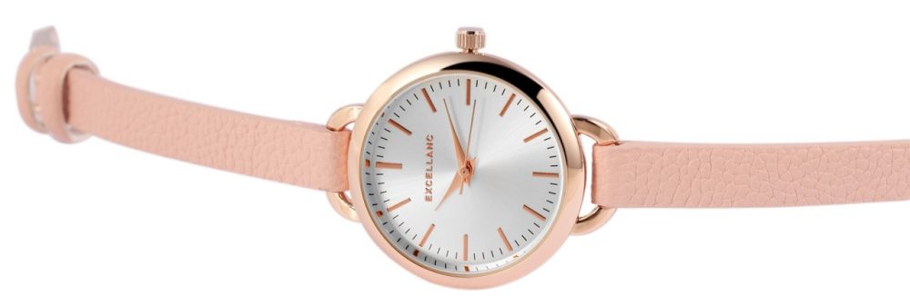 O relógio de pulso analógico feminino da Excellanc possui um movimento de quartzo de alta qualidade. A pulseira em imitação de couro tem 8 mm de largura na alça e pode ser aberta e fechada com uma fivela. A caixa de metal com vidro mineral tem um diâmetro de 32 mm e uma altura de 7 mm. O comprimento total do relógio é de 22 cm e o fundo da caixa é feito de aço inoxidável.
