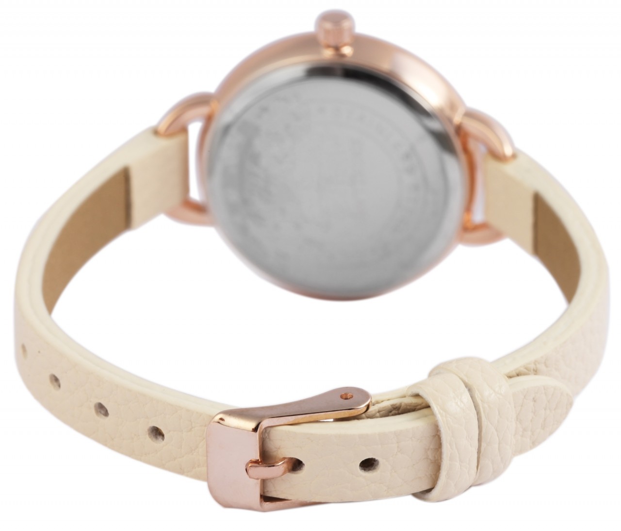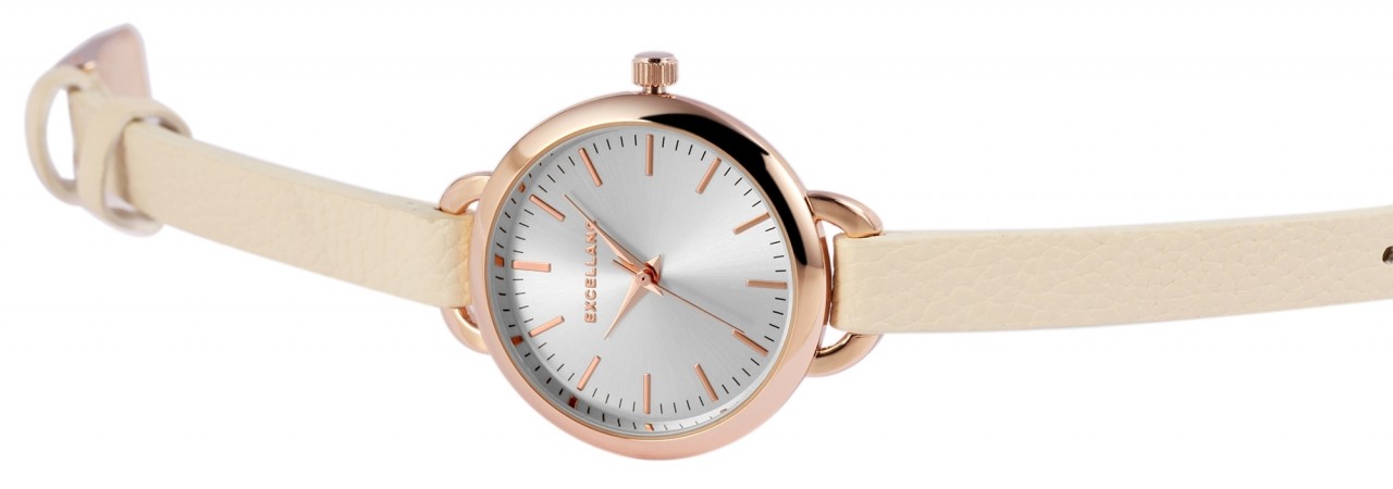 O relógio de pulso analógico feminino da Excellanc possui um movimento de quartzo de alta qualidade. A pulseira em imitação de couro tem 8 mm de largura na alça e pode ser aberta e fechada com uma fivela. A caixa de metal com vidro mineral tem um diâmetro de 32 mm e uma altura de 7 mm. O comprimento total do relógio é de 22 cm e o fundo da caixa é feito de aço inoxidável.