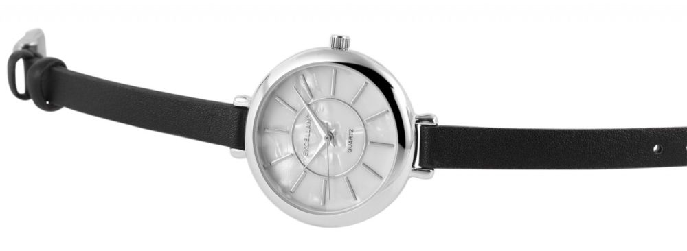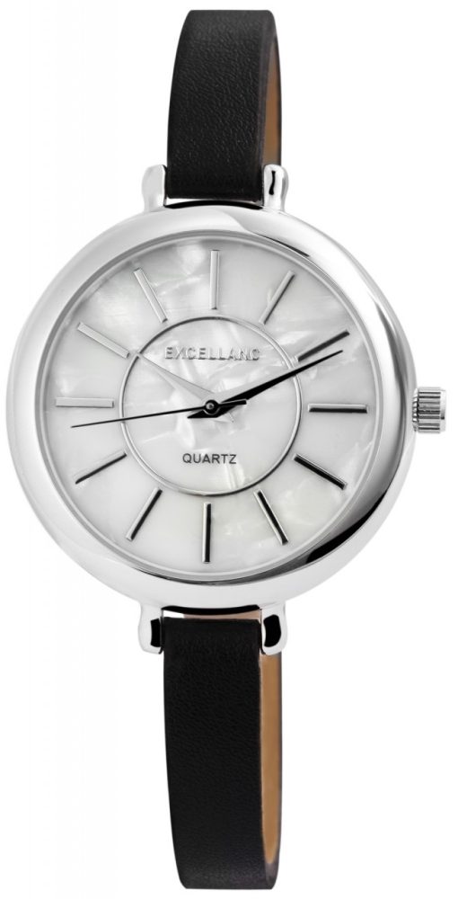 O relógio de pulso analógico feminino da Excellanc possui um movimento de quartzo de alta qualidade. A pulseira em imitação de couro tem 8 mm de largura na alça e pode ser aberta e fechada com uma fivela. A caixa de metal com vidro mineral tem um diâmetro de 35 mm e uma altura de 8 mm. O comprimento total do relógio é de 22,5 cm e o fundo da caixa é feito de aço inoxidável.