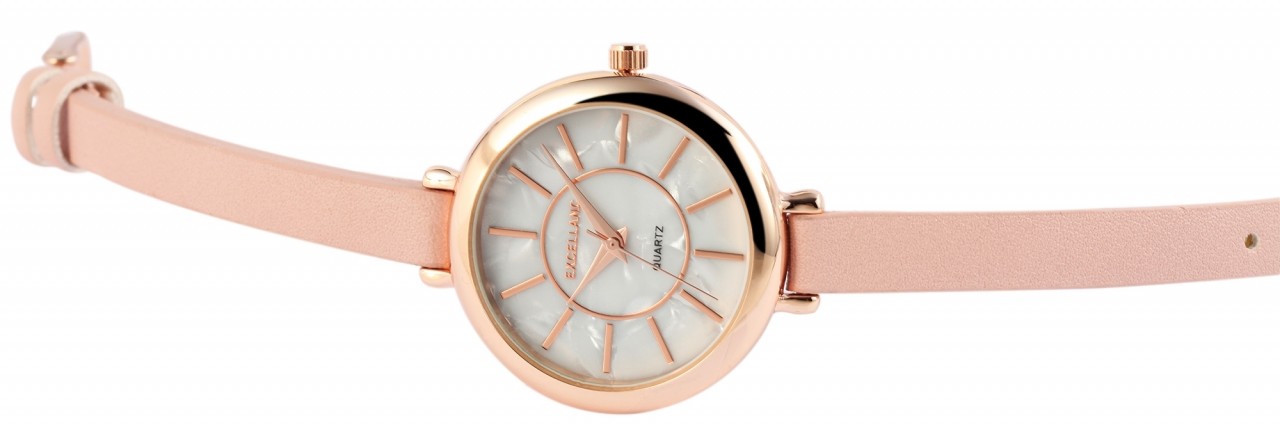 O relógio de pulso analógico feminino da Excellanc possui um movimento de quartzo de alta qualidade. A pulseira em imitação de couro tem 8 mm de largura na alça e pode ser aberta e fechada com uma fivela. A caixa de metal com vidro mineral tem um diâmetro de 35 mm e uma altura de 8 mm. O comprimento total do relógio é de 22,5 cm e o fundo da caixa é feito de aço inoxidável.