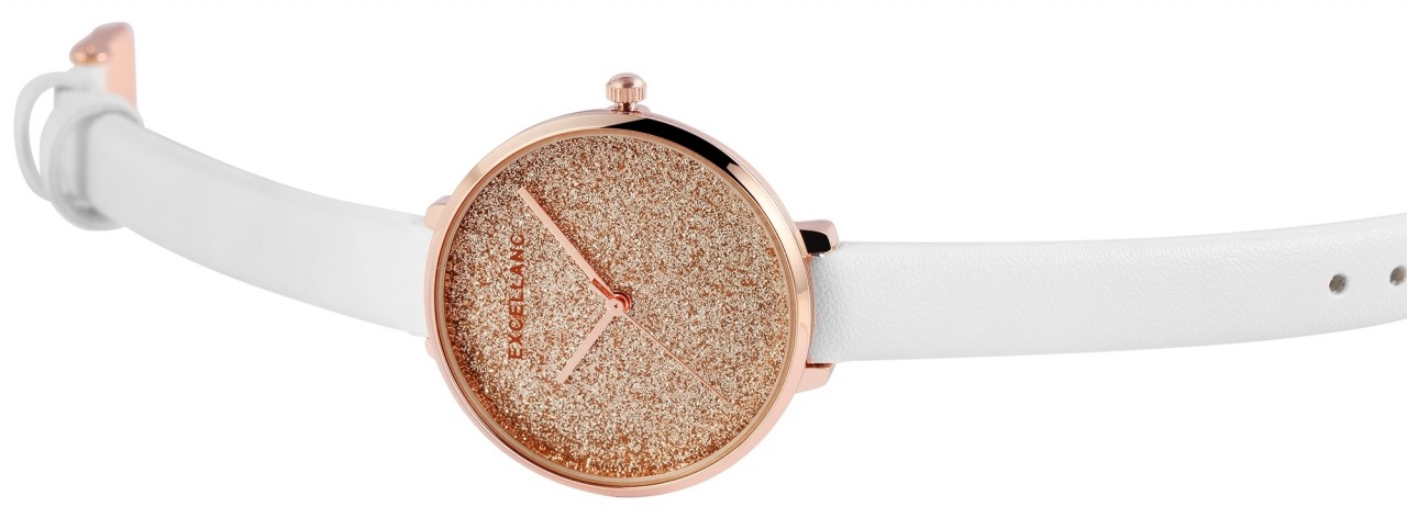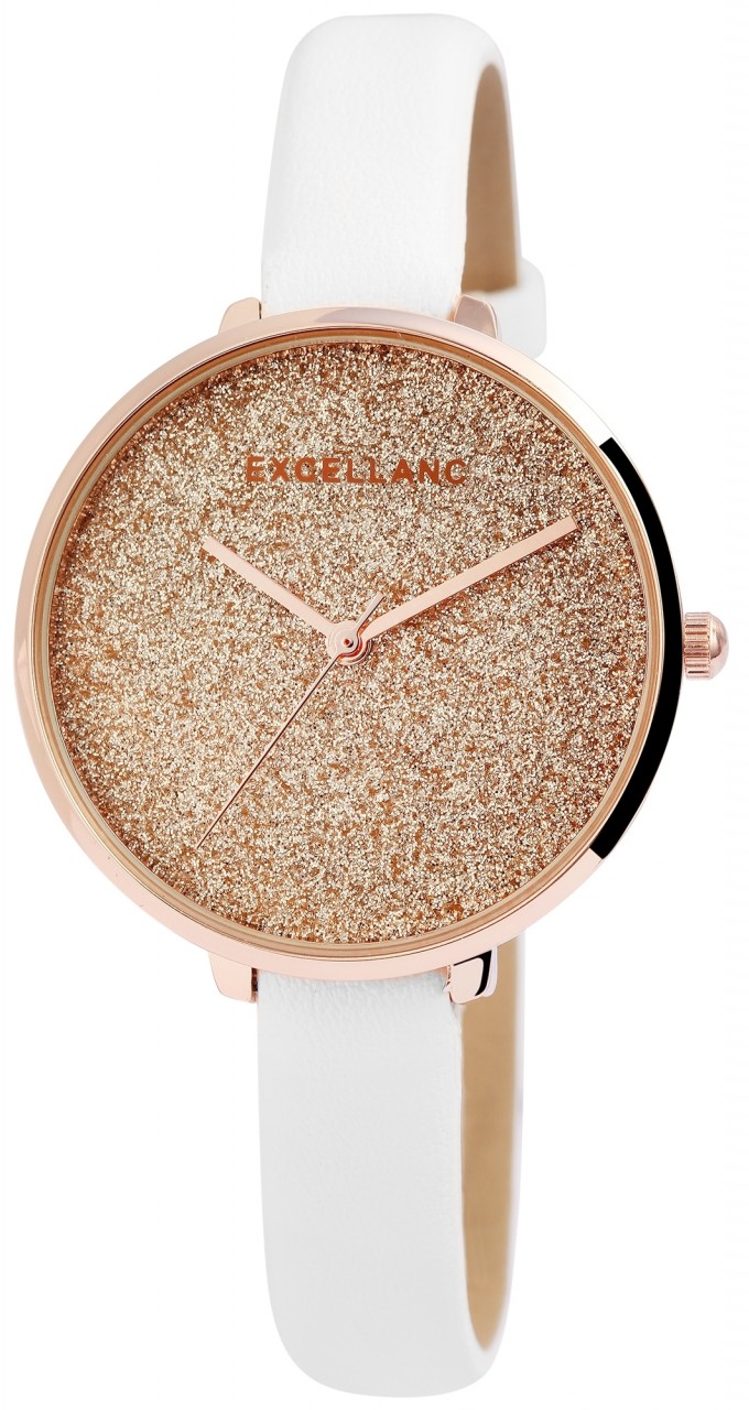 O relógio de pulso analógico feminino da Excellanc possui um movimento de quartzo de alta qualidade. A pulseira em imitação de couro tem 10 mm de largura na alça e pode ser aberta e fechada com uma fivela. A caixa de metal com vidro mineral tem um diâmetro de 34 mm e uma altura de 8 mm. O comprimento total do relógio é de 22 cm e o fundo da caixa é feito de aço inoxidável. Um destaque especial é o mostrador, que é decorado com muitas partículas de glitter e torna o relógio um atrativo muito especial.
