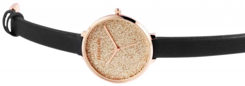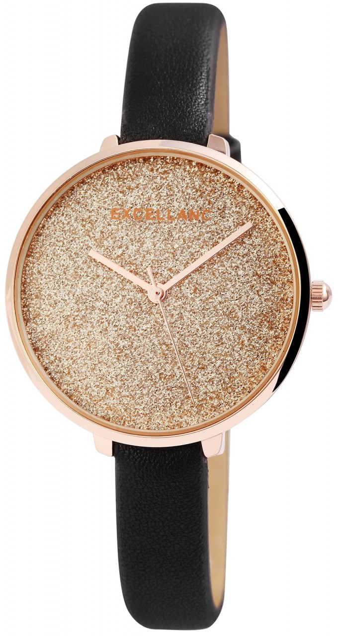 O relógio de pulso analógico feminino da Excellanc possui um movimento de quartzo de alta qualidade. A pulseira em imitação de couro tem 10 mm de largura na alça e pode ser aberta e fechada com uma fivela. A caixa de metal com vidro mineral tem um diâmetro de 34 mm e uma altura de 8 mm. O comprimento total do relógio é de 22 cm e o fundo da caixa é feito de aço inoxidável. Um destaque especial é o mostrador, que é decorado com muitas partículas de glitter e torna o relógio um atrativo muito especial.