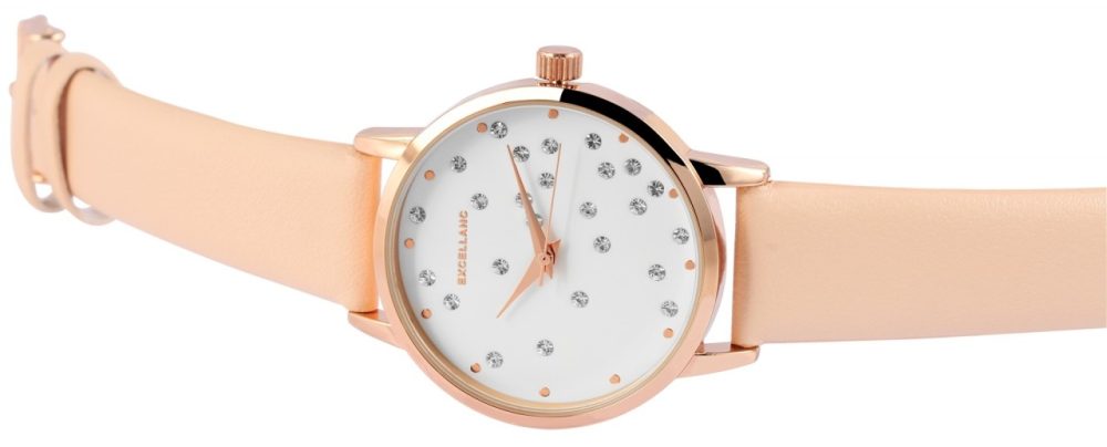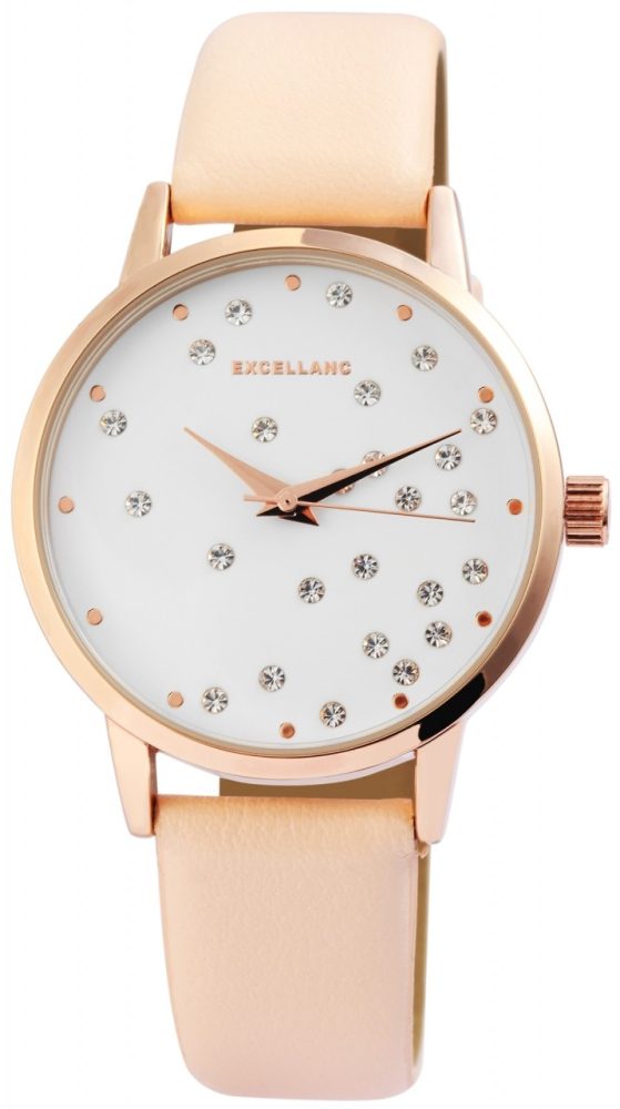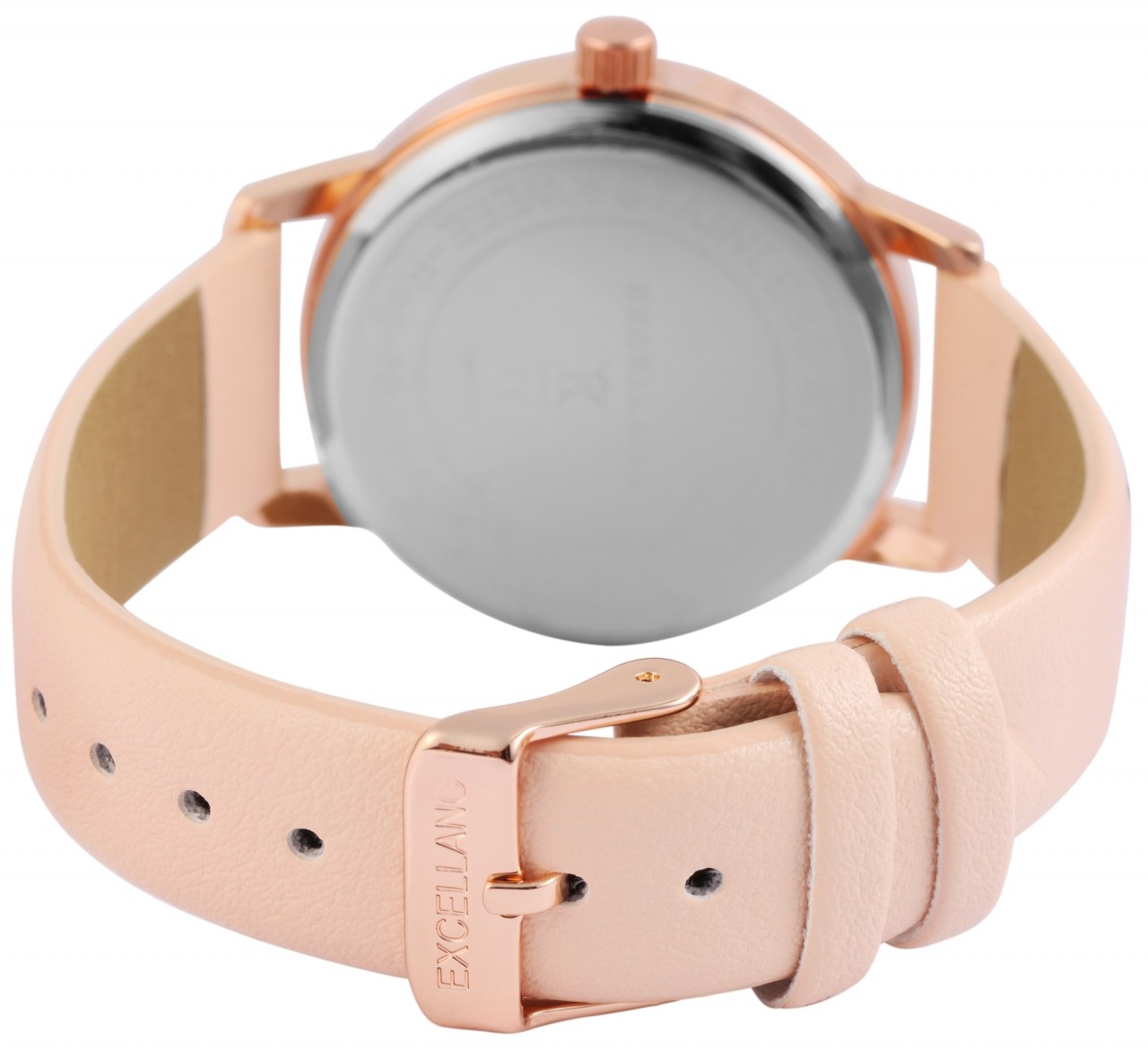 O relógio analógico feminino da Excellanc possui um movimento de quartzo de alta qualidade. A pulseira em imitação de couro tem 18 mm de largura e abre com uma fivela. O comprimento total é de 23 cm. A caixa de metal com vidro mineral tem dimensão de 38 mm e altura de caixa de 9 mm. A tampa da caixa é feita de aço inoxidável.
