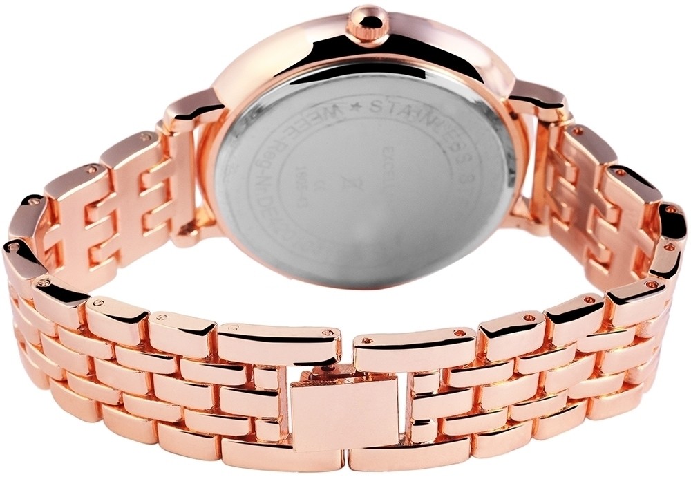 O relógio analógico feminino da Excellanc possui um movimento de quartzo de alta qualidade. A pulseira de metal tem 14 mm de largura e abre com um fecho de clipe. O comprimento total é de 18 cm. A caixa de metal com vidro mineral tem dimensão de 35 mm e altura de caixa de 7 mm. A tampa da caixa é feita de aço inoxidável.