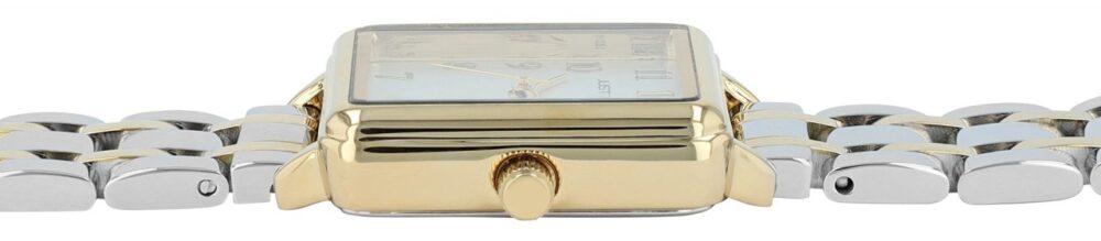 O relógio feminino “Colette” da JUST WATCH combina design moderno com acabamento de alta qualidade e não deve faltar em nenhuma coleção de relógios. A caixa retangular de metal (26 x 23 x 8 mm) com parte traseira de aço inoxidável dá ao relógio um toque de estilo, enquanto a pulseira de elos de aço inoxidável (21,8 cm de comprimento, 6 mm de largura) com fecho borboleta garante um ajuste seguro. O comprimento pode ser ajustado individualmente, bastando remover os elos individuais. Equipado com o movimento de quartzo Miyota 2035 de alta qualidade, o relógio oferece cronometragem precisa e confiabilidade. O mostrador de design simples com algarismos arábicos garante boa legibilidade. Com resistência à água de 3 ATM, o relógio é adequado para o uso diário.