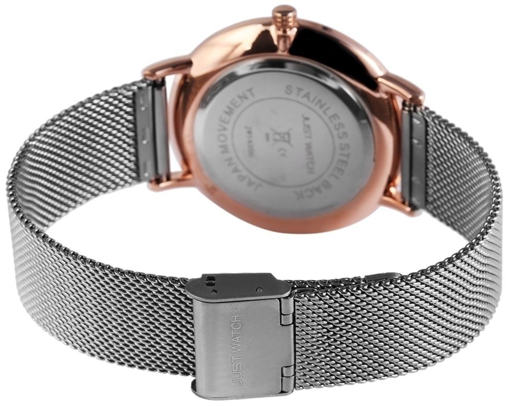 O relógio analógico masculino da Just Watch possui um Miyota GL20. A pulseira de couro genuíno tem 20 mm de largura e abre com uma fivela. A caixa de metal com vidro mineral tem dimensão de 41 mm e altura de caixa de 6 mm. A tampa da caixa é feita de aço inoxidável. O relógio é testado com pressão de 3 ATM. Caixa original