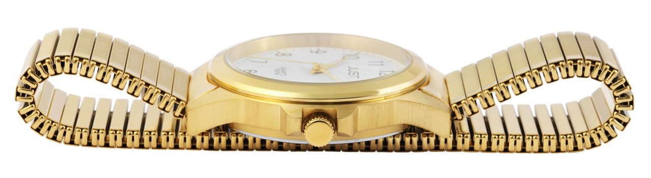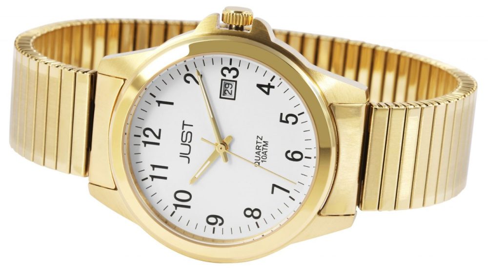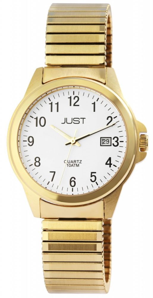 Relógio em aço inoxidável dourado da marca Just. Caraterísticas: 3 ponteiros e exibição da data.