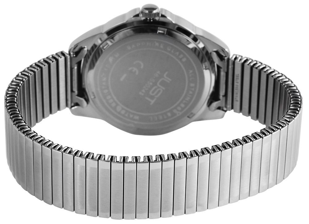 A pulseira de aço inoxidável tem uma largura de 18 mm e pode ser aberta e fechada usando uma fivela de aço inoxidável. O comprimento total do relógio masculino é de 23 cm.