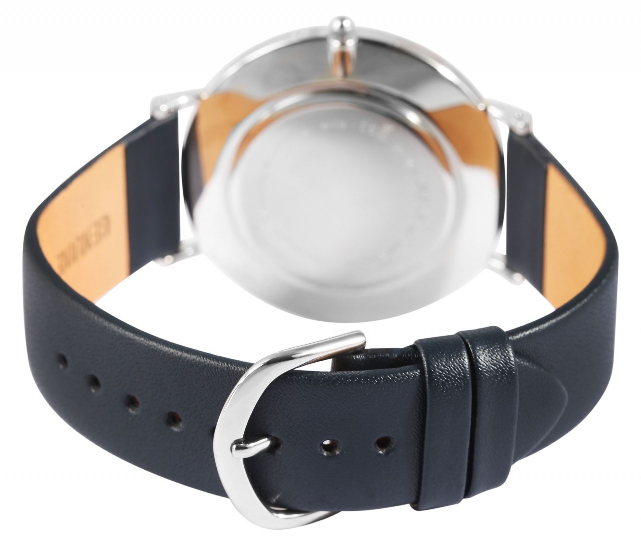 Relógio analógico masculino com bracelete em pele genuína. Resistência à água de 5ATM. Diâmetro da caixa de 41 mm.