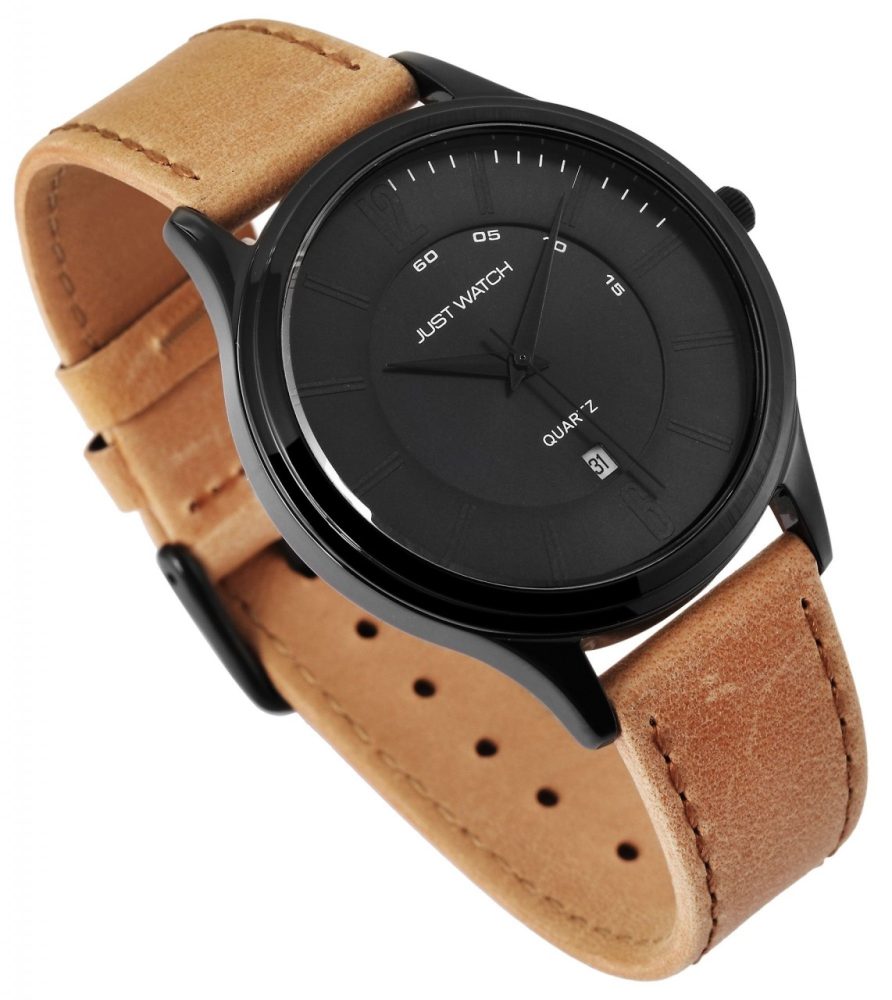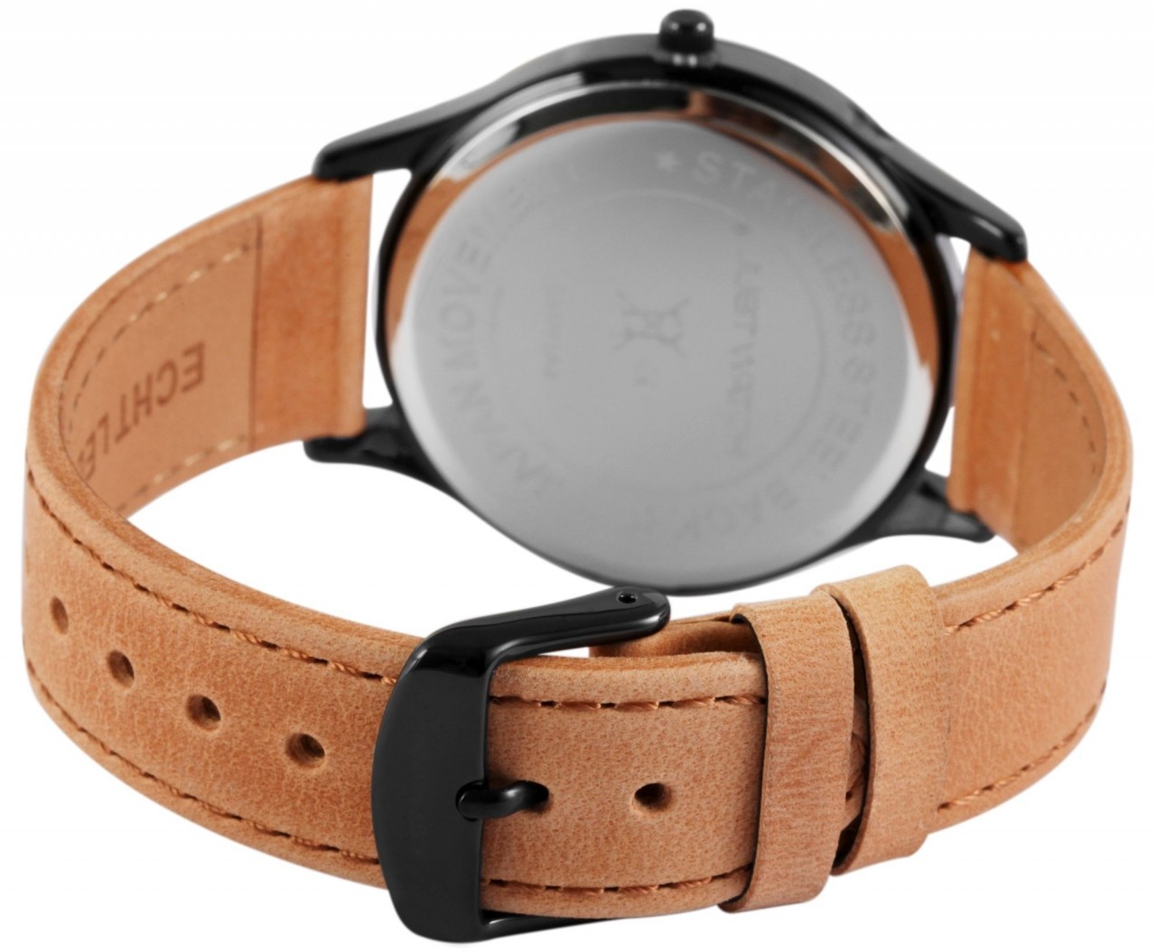 A pulseira de couro genuíno tem 20 mm de largura e abre com uma fivela de aço inoxidável. O comprimento total é de 20 cm.