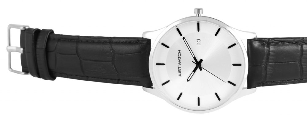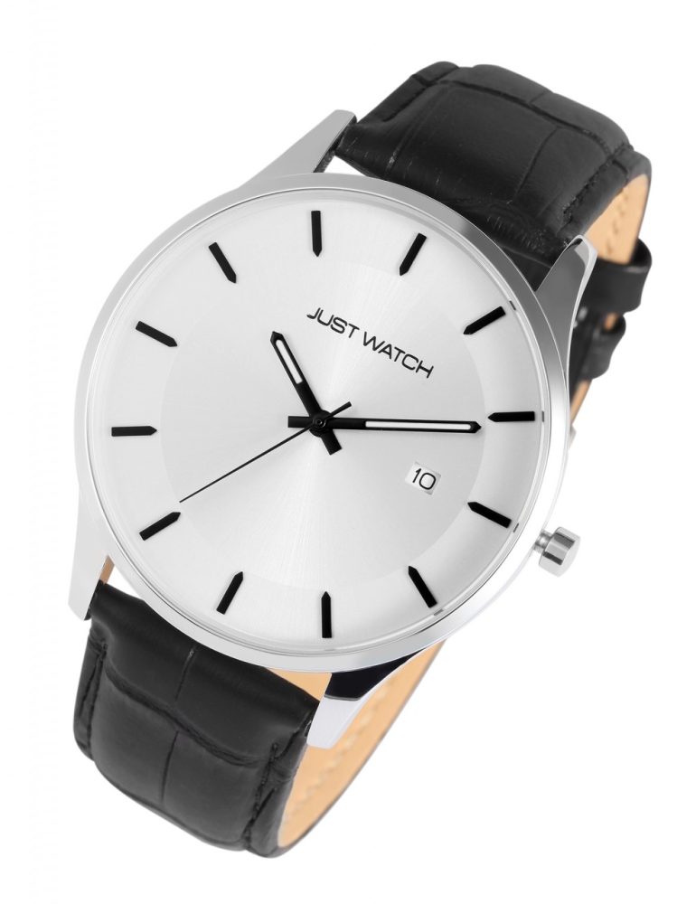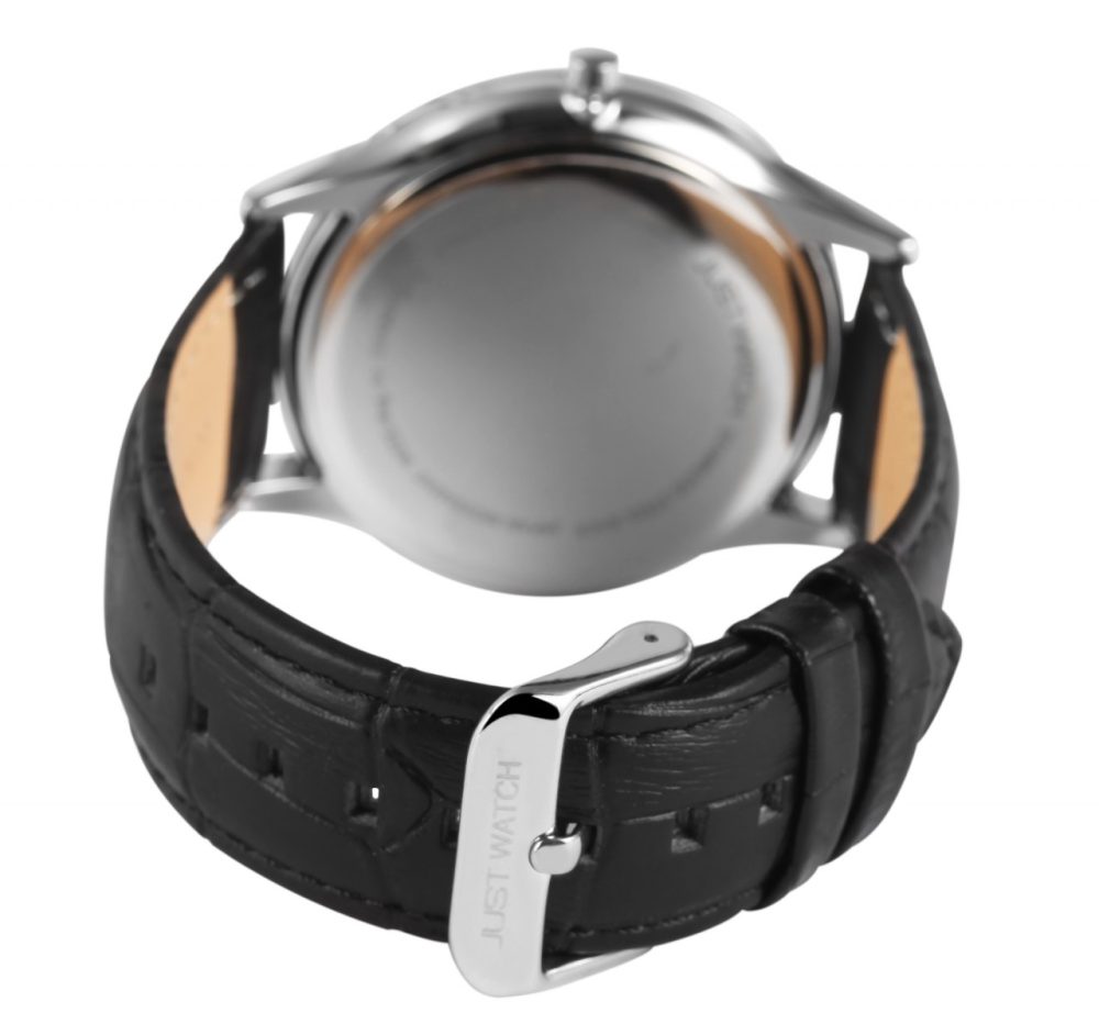 O relógio de pulso analógico masculino de 3 ponteiros da Just Watch possui um movimento de quartzo de alta qualidade. A pulseira de couro genuíno com relevo tem 22 mm de largura na alça e pode ser aberta e fechada com uma fivela de aço inoxidável. O comprimento total do relógio é de 25,5 cm. A caixa de metal com vidro mineral tem um diâmetro de 43 mm e uma altura de 8 mm. O fundo da caixa é feito de aço inoxidável e o relógio tem resistência à água de 3 bar. O mostrador é simples e claramente projetado. Os ponteiros e índices combinam com a cor da caixa e, assim, completam harmoniosamente o quadro geral. Outra particularidade é a exibição da data às três horas e os ponteiros revestidos com Superluminova, que permitem a leitura das horas mesmo no escuro. Como acessórios do seu produto você receberá um cartão de garantia e uma caixa original da marca.