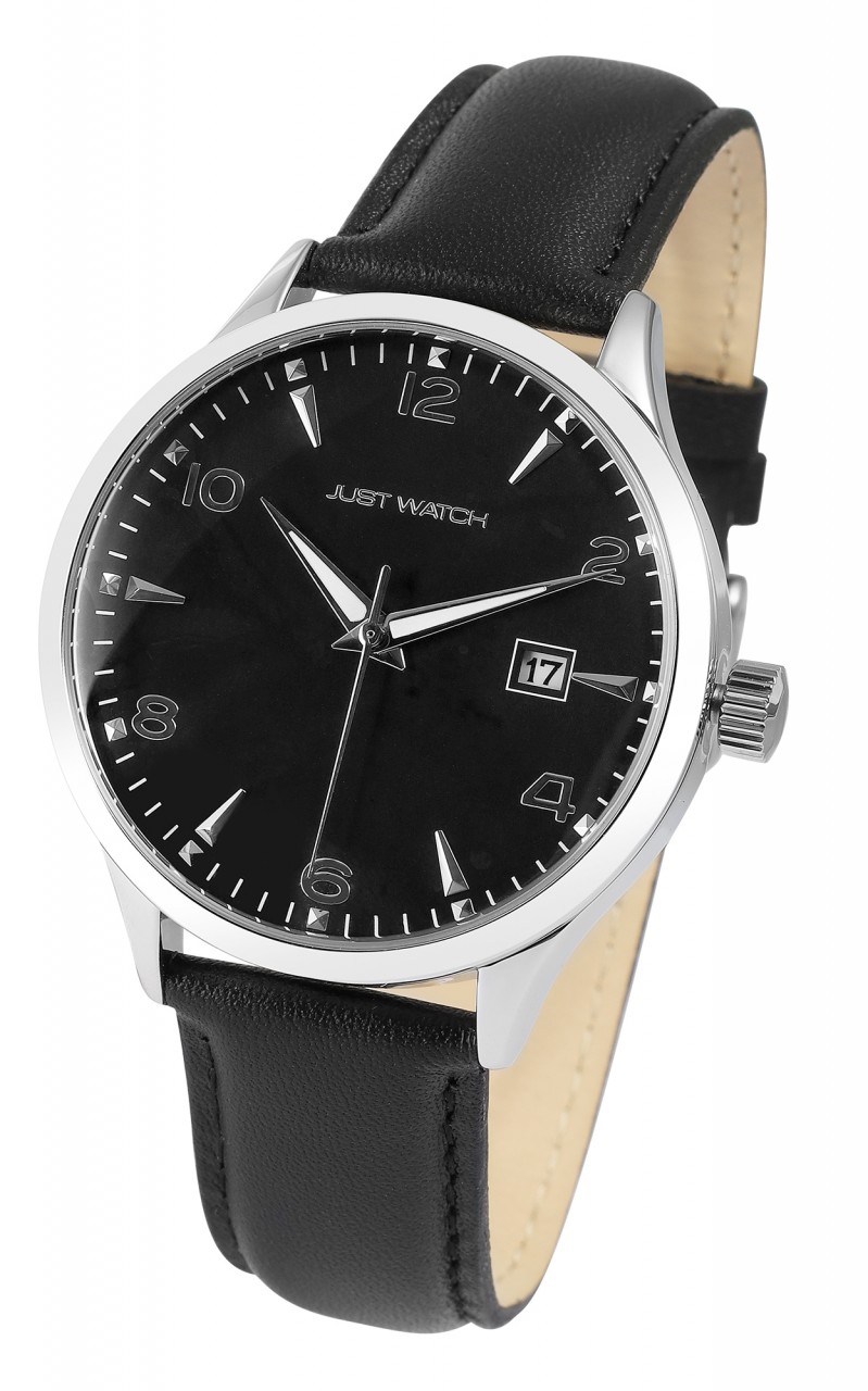 O relógio de pulso analógico masculino de 3 ponteiros da Just Watch possui um movimento de quartzo de alta qualidade. A pulseira de couro genuíno tem 20 mm de largura na alça e pode ser aberta e fechada com uma fivela de aço inoxidável. O comprimento total do relógio é de 26,5 cm. A caixa de metal com vidro mineral tem um diâmetro de 42 mm e uma altura de 12 mm. O fundo da caixa é feito de aço inoxidável e o relógio tem resistência à água de 3 bar. O mostrador é simples e claramente projetado. Os ponteiros e índices combinam com a cor da caixa e, assim, completam harmoniosamente o quadro geral. Outra particularidade é a exibição da data às três horas e os ponteiros revestidos com Superluminova, que permitem a leitura das horas mesmo no escuro.