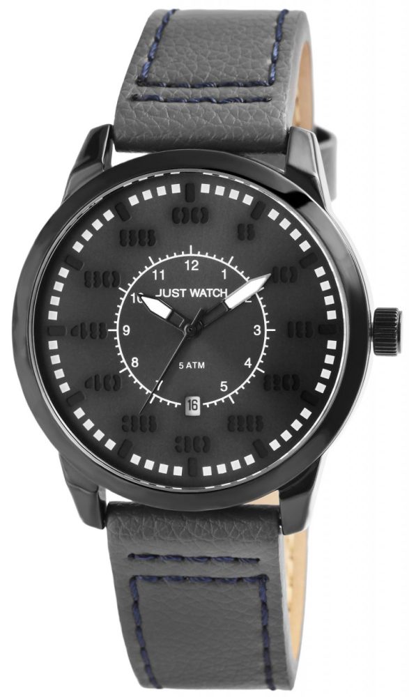 O relógio de pulso masculino analógico de 3 ponteiros da Just Watch tem movimento Miyota 2115 e está disponível em diversas cores. O relógio com pulseira de couro genuíno tem um comprimento total de 24 cm e uma largura de 22 mm. A caixa de metal com vidro mineral tem um diâmetro de 44 mm e uma altura de 11 mm. O fundo da caixa é feito de aço inoxidável. Este modelo masculino impressiona pelas suas características especiais, como os índices luminosos e os ponteiros luminosos, que permitem a leitura das horas ao anoitecer. A data é exibida ao lado da hora. O relógio masculino também tem resistência à água de 3 bar e pode ser aberto e fechado com fivela.