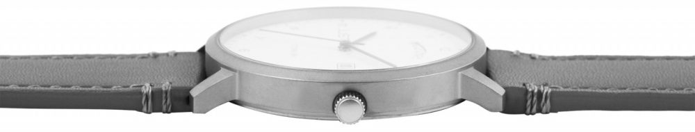 A pulseira é feita de couro genuíno e tem uma largura de 22 mm. É aberto e fechado com uma fivela de titânio. O comprimento total do relógio é de 25 cm.