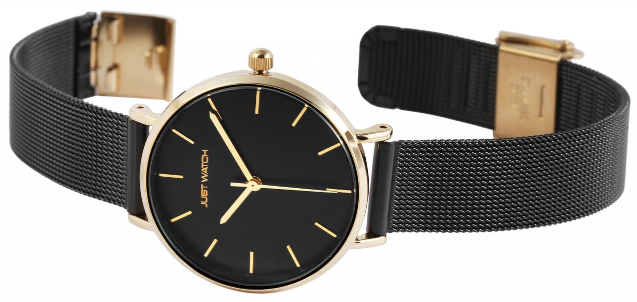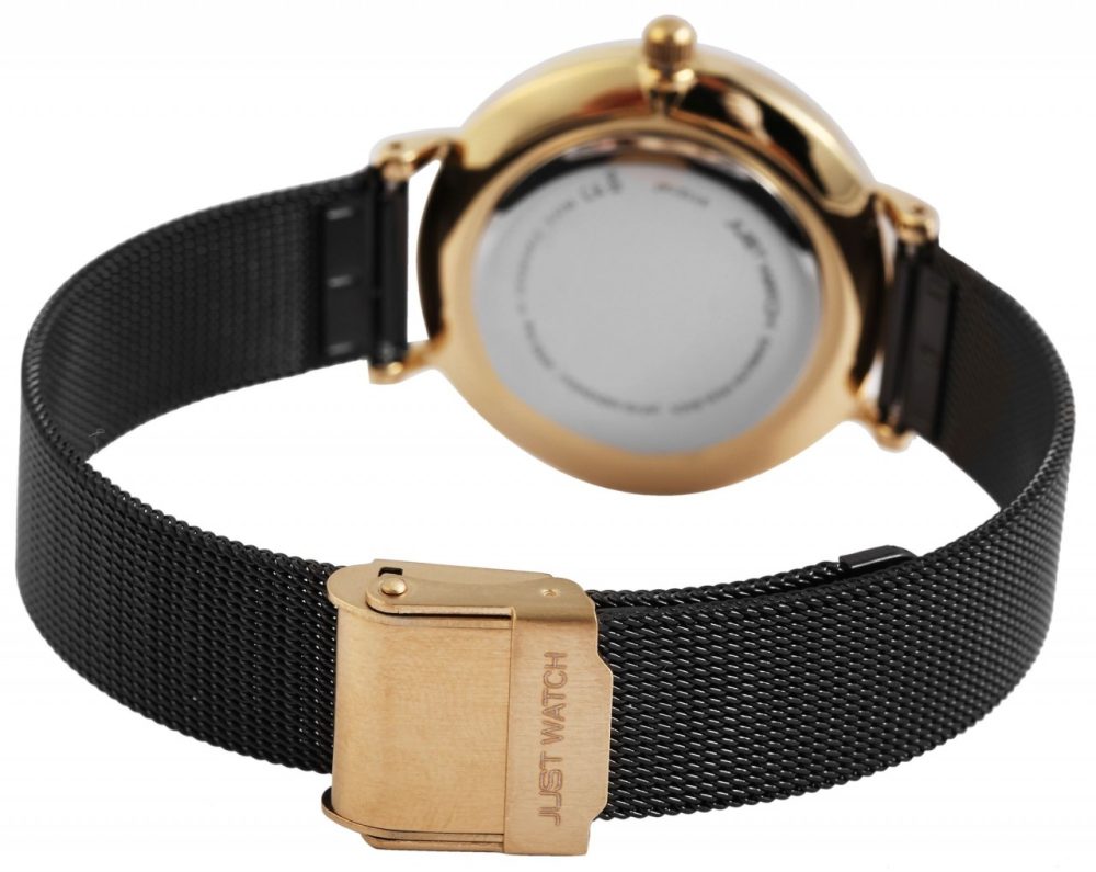A pulseira é feita de aço inoxidável e tem uma largura de 14 mm. É aberto e fechado com fecho de gancho ajustável. O comprimento total do relógio é de 22.5 cm.