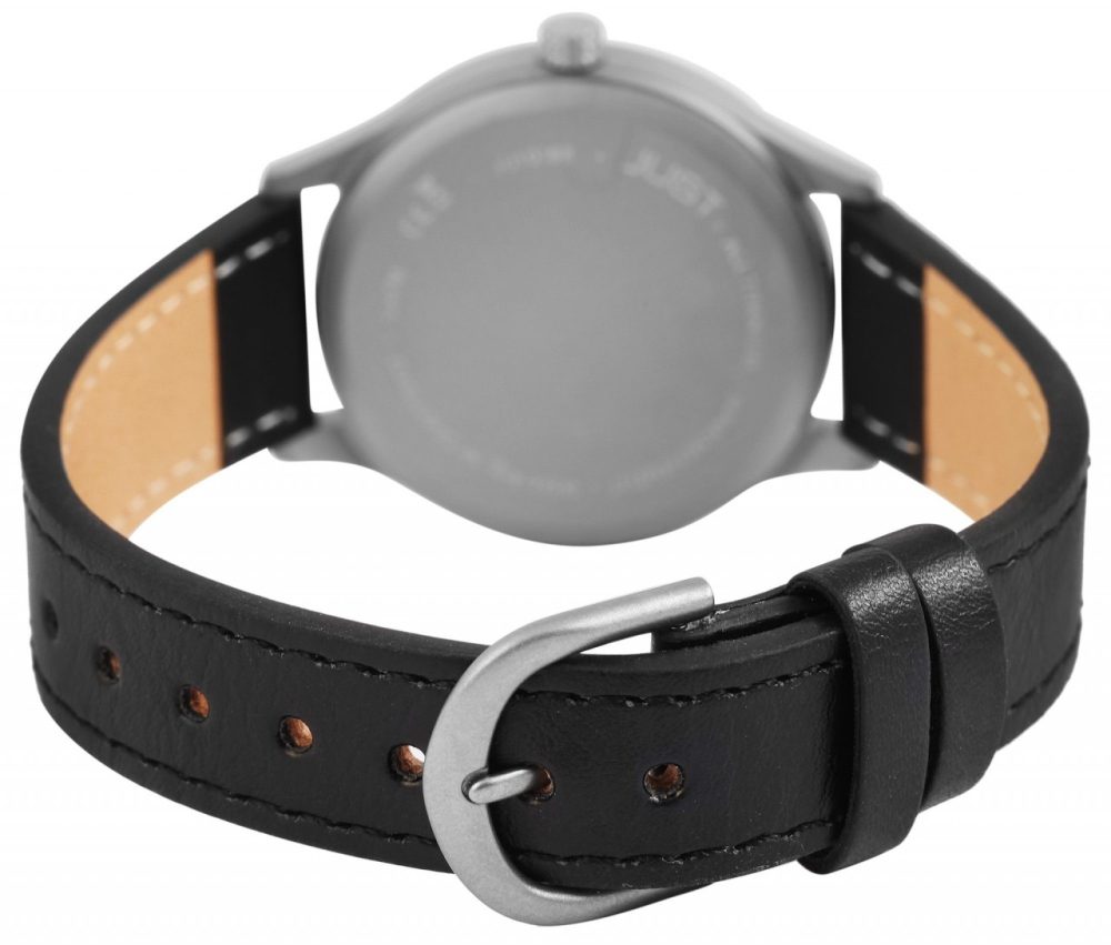 A pulseira de couro genuíno tem 16mm de largura e abre com uma fivela.