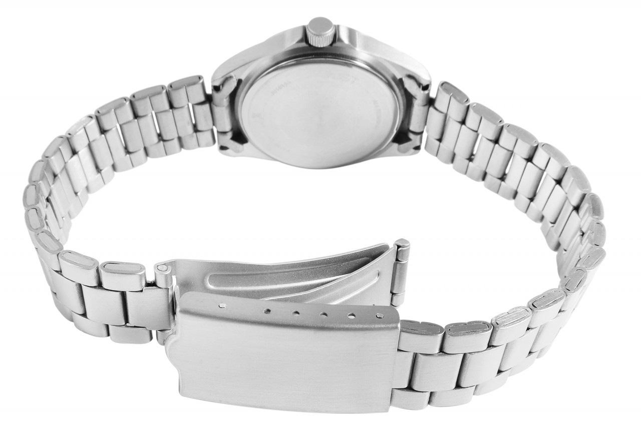 O relógio de pulso feminino analógico de 3 ponteiros da Just possui um movimento de quartzo de alta qualidade. A pulseira de elos é feita de titânio e tem uma largura de 14 mm. É aberto e fechado com fecho dobrável de titânio. O comprimento total do relógio é de 18 cm. A caixa redonda de titânio com vidro mineral tem um diâmetro de 27 mm e uma altura de 7 mm. O fundo da caixa também era feito de titânio. O relógio também possui resistência à água de 5 bar. A divisão clara do mostrador permite ler a hora de forma rápida e fácil. Devido aos materiais de alta qualidade e amigos da pele, o relógio é ideal para quem sofre de alergias. Como acessórios do seu produto, você receberá um cartão de garantia e uma embalagem original da marca Just.