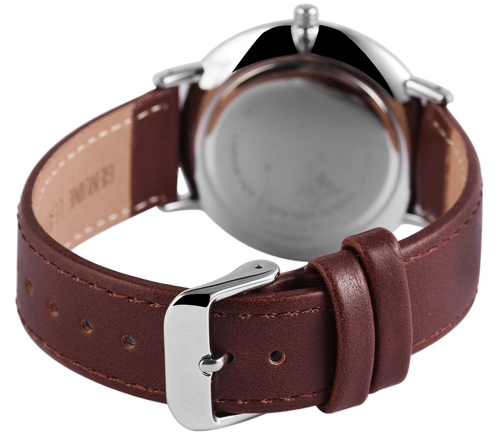 O relógio analógico masculino da Just Watch possui um Miyota GL20. A pulseira de couro genuíno tem 20 mm de largura e abre com uma fivela. A caixa de metal com vidro mineral tem dimensão de 41 mm e altura de caixa de 6 mm. A tampa da caixa é feita de aço inoxidável. O relógio é testado com pressão de 3 ATM. Caixa original