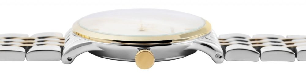 A caixa com vidro mineral tem diâmetro de 41 mm e altura de 10 mm.
