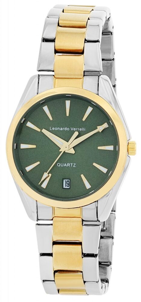 Um elegante relógio feminino da Leonardo Verrelli que impressiona pelo seu design simples e moderno. A caixa de metal com parte traseira de aço inoxidável tem um diâmetro de 34 mm e é complementada por uma pulseira de elos de aço inoxidável, que é presa ao pulso com um fecho prático de borboleta. O comprimento total do relógio é de 20 cm. O mostrador com índice de linha e um prático visor de data na posição de 6 horas são protegidos por um vidro mineral durável. O revestimento luminoso nos índices e ponteiros das linhas garante uma boa legibilidade das horas, mesmo em condições de pouca iluminação. O relógio é alimentado por um confiável movimento de quartzo SL 25 que garante cronometragem precisa. Disponível em muitas variações de cores, este relógio oferece a escolha certa para todos os gostos.