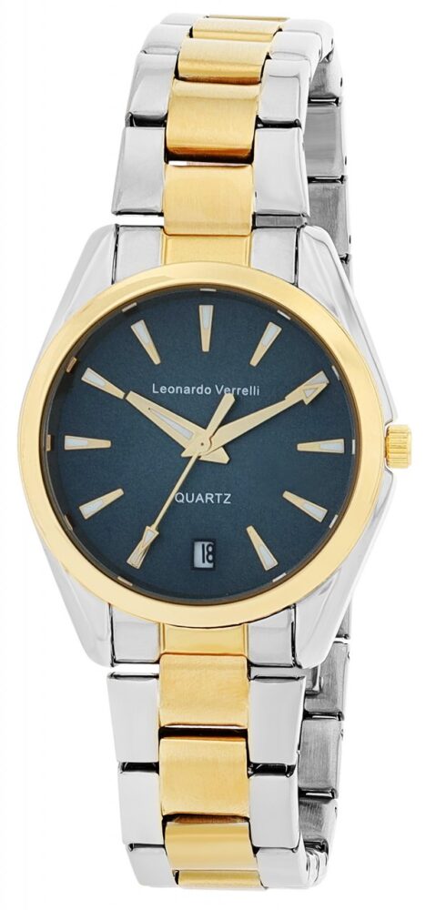 Um elegante relógio feminino da Leonardo Verrelli que impressiona pelo seu design simples e moderno. A caixa de metal com parte traseira de aço inoxidável tem um diâmetro de 34 mm e é complementada por uma pulseira de elos de aço inoxidável, que é presa ao pulso com um fecho prático de borboleta. O comprimento total do relógio é de 20 cm. O mostrador com índice de linha e um prático visor de data na posição de 6 horas são protegidos por um vidro mineral durável. O revestimento luminoso nos índices e ponteiros das linhas garante uma boa legibilidade das horas, mesmo em condições de pouca iluminação. O relógio é alimentado por um confiável movimento de quartzo SL 25 que garante cronometragem precisa. Disponível em muitas variações de cores, este relógio oferece a escolha certa para todos os gostos.