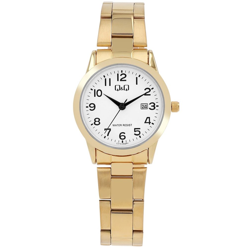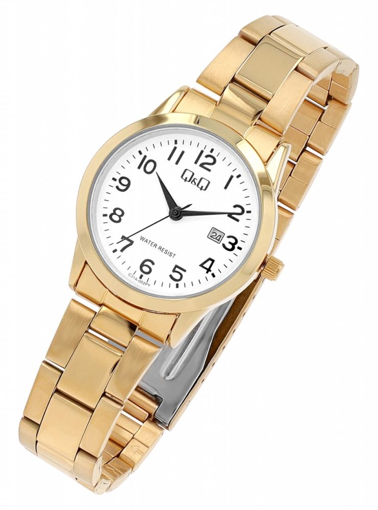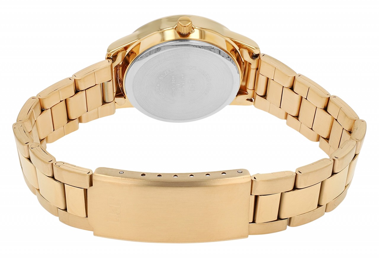 Relógio feminino Q&Q com pulseira em aço inoxidável e display de data – um produto que irá enriquecer a sua gama. Q&Q significa a mais alta qualidade e precisão. Este relógio de pulso feminino é movido por um movimento de quartzo de primeira classe que se caracteriza por uma confiabilidade excepcional. Uma funcionalidade prática que os seus clientes apreciam é a exibição da data às três horas, que garante que o utilizador deste relógio esteja sempre bem informado. A pulseira de aço inoxidável dourada não é apenas elegante, mas também extremamente durável. Graças aos elementos encurtáveis, cabe perfeitamente em qualquer pulso, o que aumenta ainda mais a atratividade deste relógio para os seus clientes. O fecho dobrável em aço inoxidável garante um ajuste seguro e fácil manuseio. Este relógio é dotado de uma resistência à água de 3 ATM.