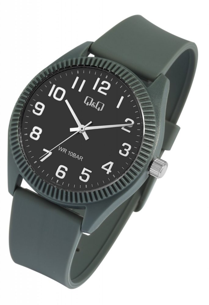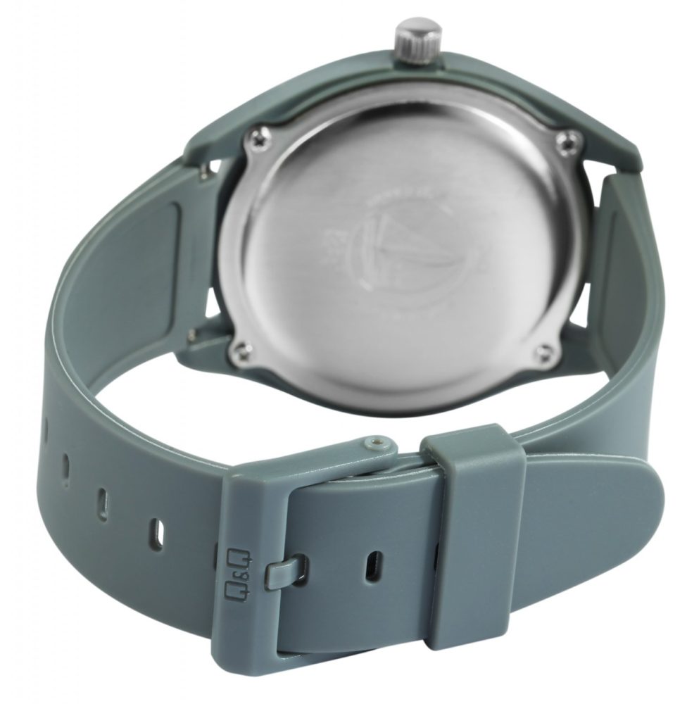 O relógio de pulso unissexo analógico de 3 ponteiros da marca Q&Q possui um movimento de quartzo preciso e de alta qualidade. A pulseira de silicone cinza tem 21 mm de largura na alça e pode ser aberta e fechada com uma fivela cinza. O comprimento total do relógio é de 25 cm. A caixa de plástico cinza com vidro mineral tem um diâmetro de 41 mm e uma altura de 11 mm. A parte traseira da caixa é feita de aço inoxidável e fixada à caixa com quatro parafusos de aço inoxidável. A hora pode ser facilmente lida graças ao mostrador cinza com números brancos em estilo árabe. Além disso, o relógio é confortável de usar graças à pulseira de silicone macia e pode ser combinado maravilhosamente graças ao design desportivo. O material também se mostra particularmente amigo da pele e, portanto, ideal para quem sofre de alergias.