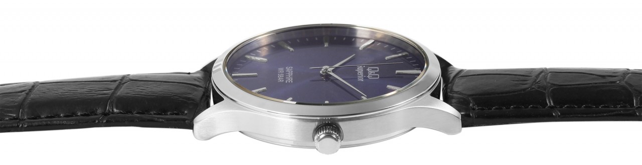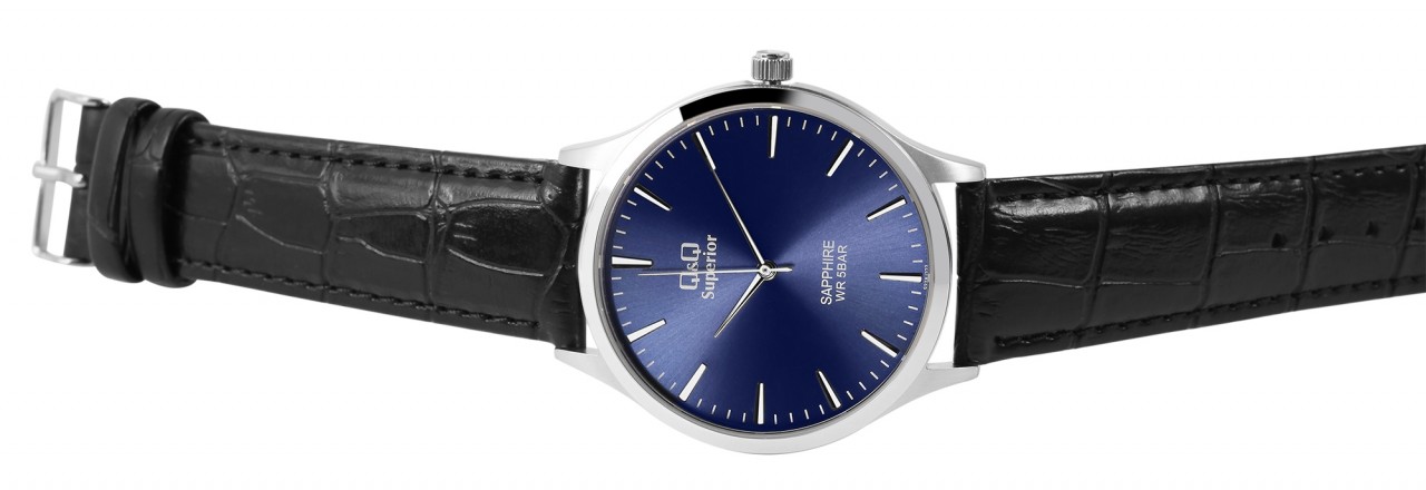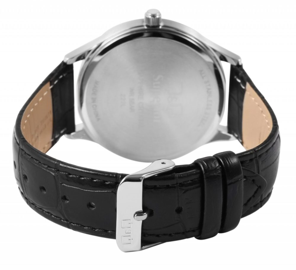 O relógio de pulso unissex analógico de 3 ponteiros da marca Q&Q possui um movimento de quartzo preciso e de alta qualidade da marca Miyota. A pulseira em couro genuíno preto com relevo tem 20 mm de largura nas alças e pode ser aberta e fechada com uma fivela de aço inoxidável prateada. A pulseira acolchoada garante um ajuste confortável e é perfeita para quem sofre de alergias devido à matéria-prima natural. O comprimento total do relógio é de 24 cm. A caixa do relógio prateada com cristal de safira tem um diâmetro de 40 mm e uma altura de caixa de 8 mm. A hora pode ser facilmente lida através do mostrador azul com um índice de linha prateado. O fundo da caixa também é feito de aço inoxidável e o relógio tem resistência à água de 5 bar. O relógio unissex impressiona pelo seu design clássico e elegante.