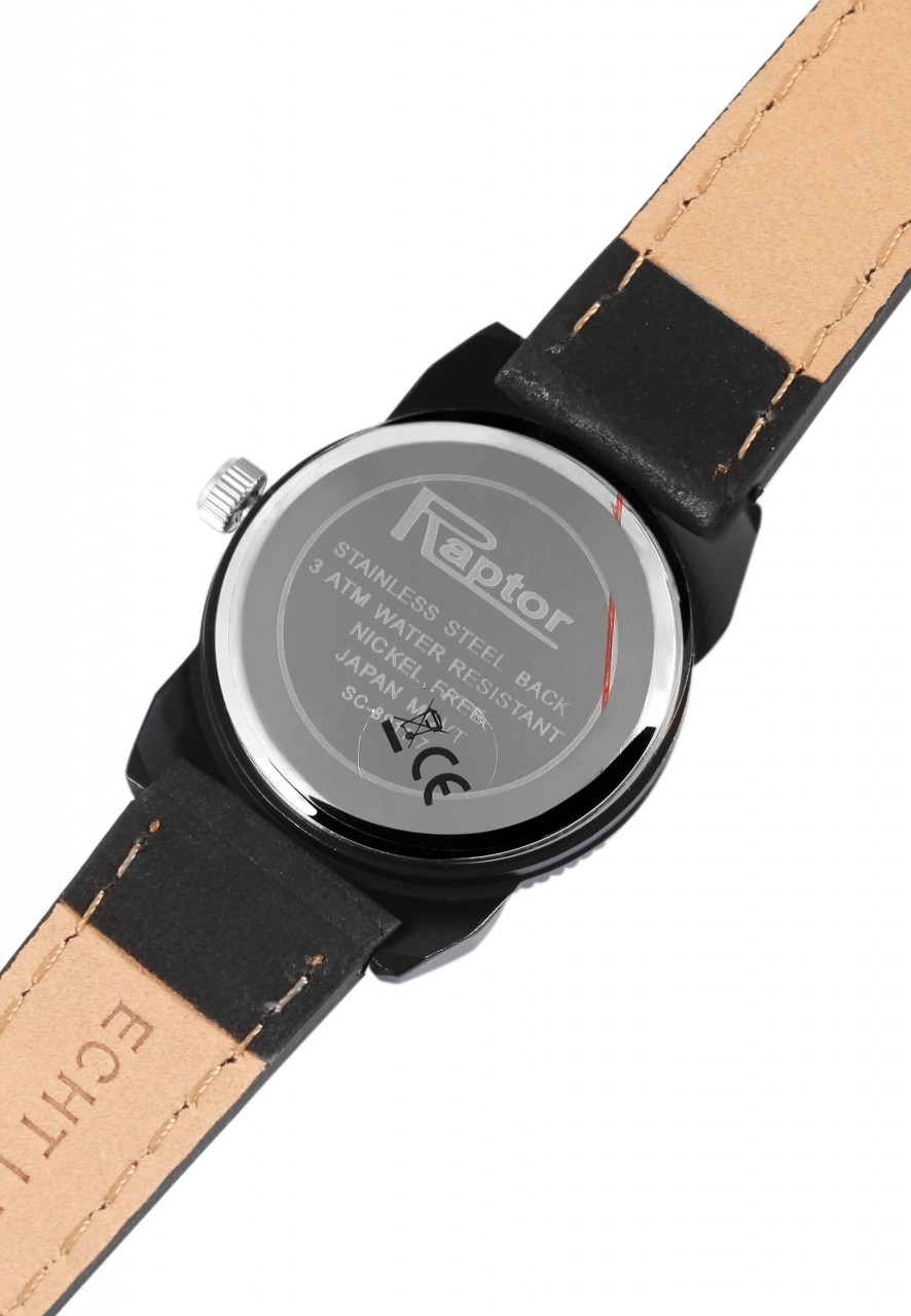 O relógio analógico feminino da marca Raptor possui movimento de quartzo de alta qualidade. O nome do modelo é RA168. A bracelete de pele genuína tem 16 mm de largura e abre com uma fivela. O comprimento total é de 21 cm. A caixa de metal com vidro mineral tem dimensão de 30 mm e altura de caixa de 8 mm. A tampa da caixa é feita de aço inoxidável. O relógio é testado com pressão de 3 ATM. Como acessórios para o seu produto você receberá: cartão de garantia, caixa original.