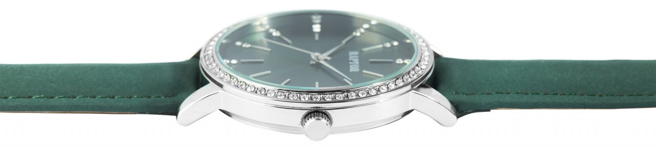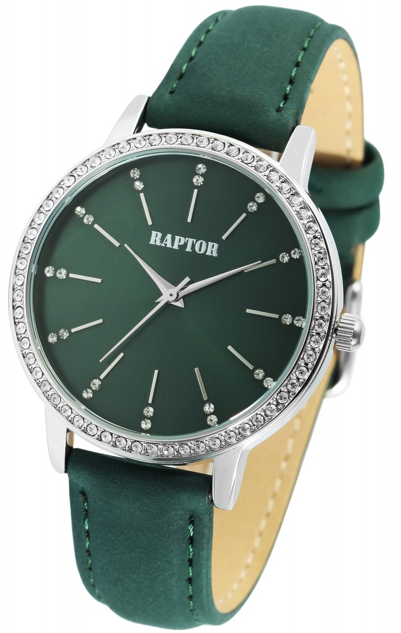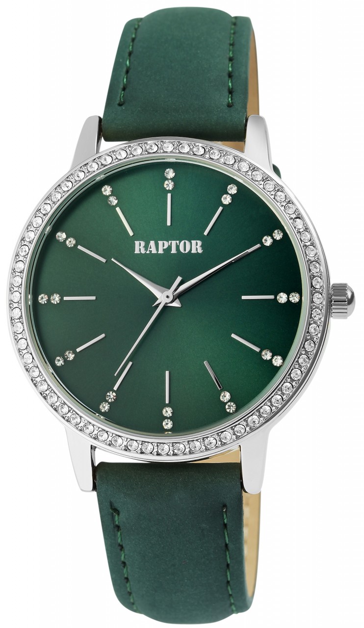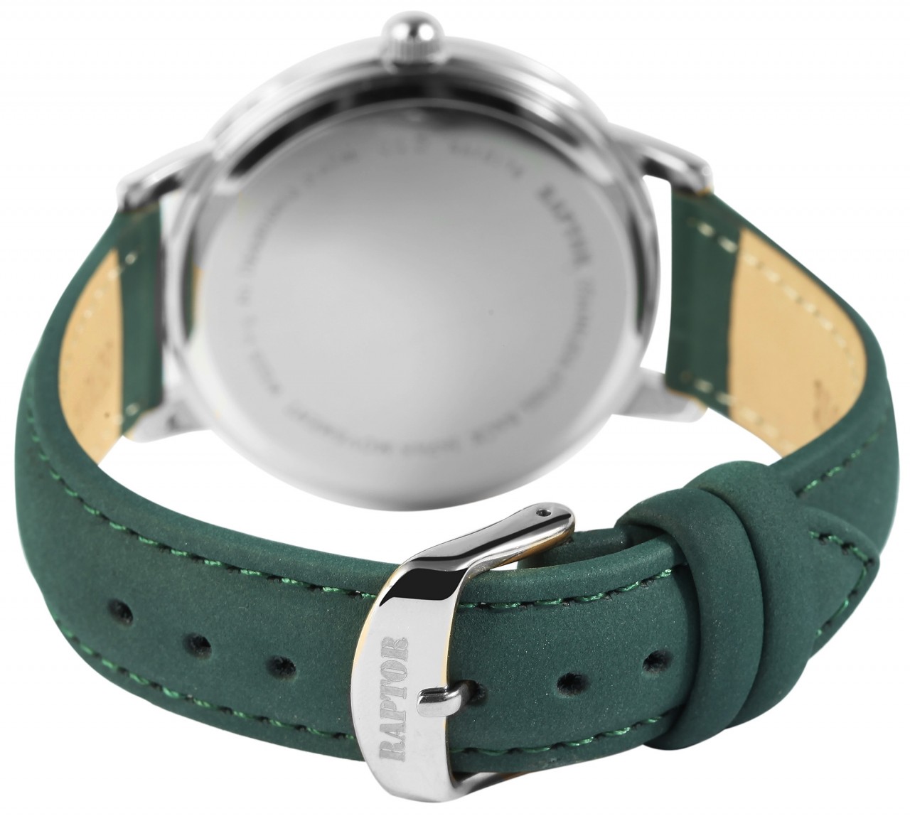 O relógio de pulso analógico de 3 ponteiros para senhora da marca Raptor possui um movimento de quartzo de alta qualidade. A bracelete em pele genuína tem 18 mm de largura na extremidade e pode ser aberta e fechada com uma fivela em aço inoxidável. O comprimento total do relógio é de 24 cm. A caixa metálica com vidro mineral tem um diâmetro de 40 mm e uma altura de 8 mm. O fundo da caixa é feito de aço inoxidável e o relógio tem uma resistência à água de 3 bar. O mostrador é monocromático e combina bem com o aspeto geral do relógio. Os ponteiros e os números são da mesma cor que a caixa e completam o…