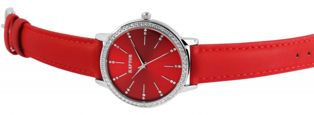 O relógio de pulso analógico de 3 ponteiros para senhora da marca Raptor possui um movimento de quartzo de alta qualidade. A bracelete em pele genuína tem 18 mm de largura na extremidade e pode ser aberta e fechada com uma fivela em aço inoxidável. O comprimento total do relógio é de 24 cm. A caixa metálica com vidro mineral tem um diâmetro de 40 mm e uma altura de 8 mm. O fundo da caixa é feito de aço inoxidável e o relógio tem uma resistência à água de 3 bar. O mostrador é monocromático e combina bem com o aspeto geral do relógio. Os ponteiros e os números são da mesma cor que a caixa e completam o design harmonioso deste relógio de pulso moderno. Um destaque visual é a luneta do relógio, que é decorada com 60 pedras brilhantes semelhantes. Isto torna a peça de joalharia um atrativo especial e faz dela uma parte indispensável de qualquer pulso.