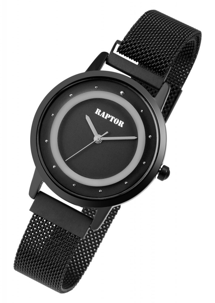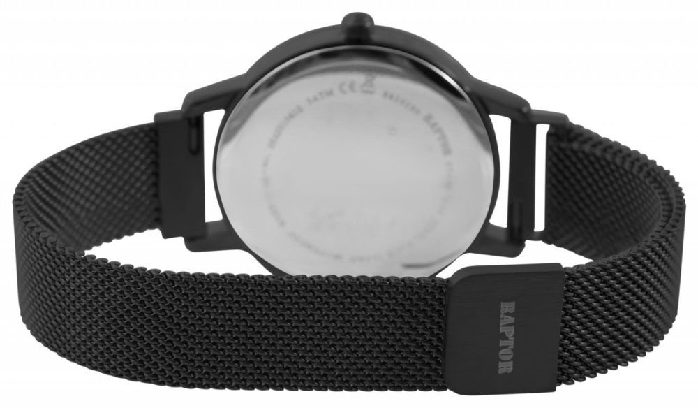 O relógio de pulso analógico de 3 ponteiros para senhora da marca Raptor possui um movimento de quartzo de alta qualidade. A bracelete milanesa tem 14 mm de largura na extremidade e pode ser aberta e fechada com um prático fecho magnético em aço inoxidável. O comprimento total do relógio é de 25 cm. A caixa metálica com vidro mineral tem um diâmetro de 35 mm e uma altura de 8 mm. O fundo da caixa é feito de aço inoxidável e o relógio tem uma resistência à água de 3 bar. O mostrador limpo tem uma disposição clara e permite uma leitura rápida e fácil das horas. Os ponteiros e os índices combinam com a cor e completam o aspeto geral harmonioso do relógio. Receberá um cartão de garantia e uma caixa original Raptor como acessórios para o seu produto.