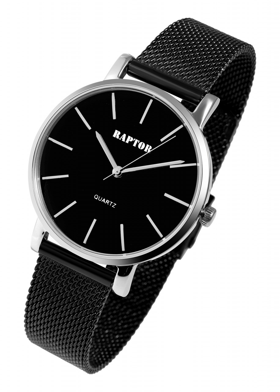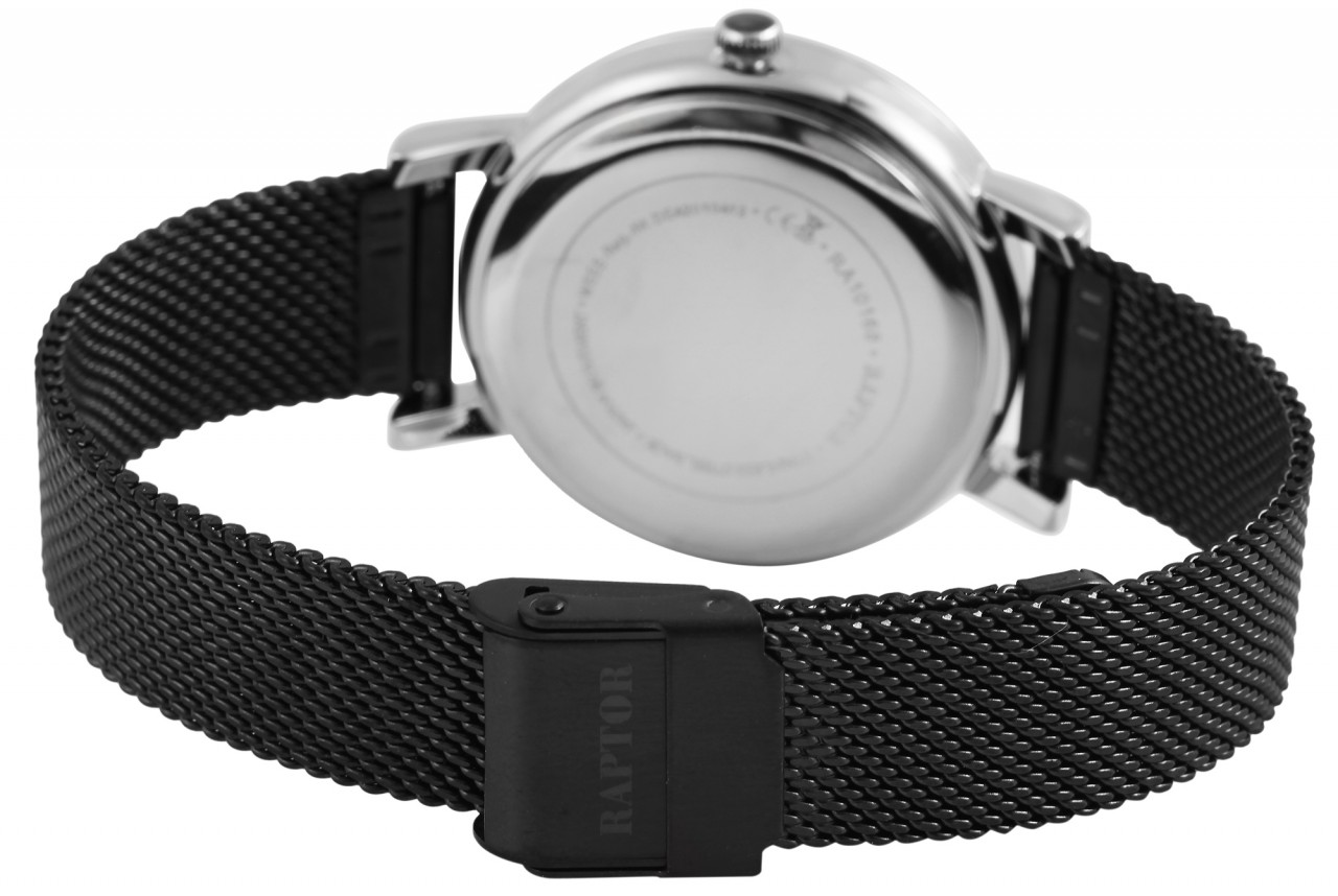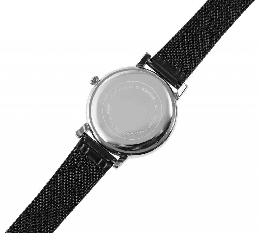 Relógio feminino Raptor “Wieka” com pulseira de malha de aço inoxidável.
