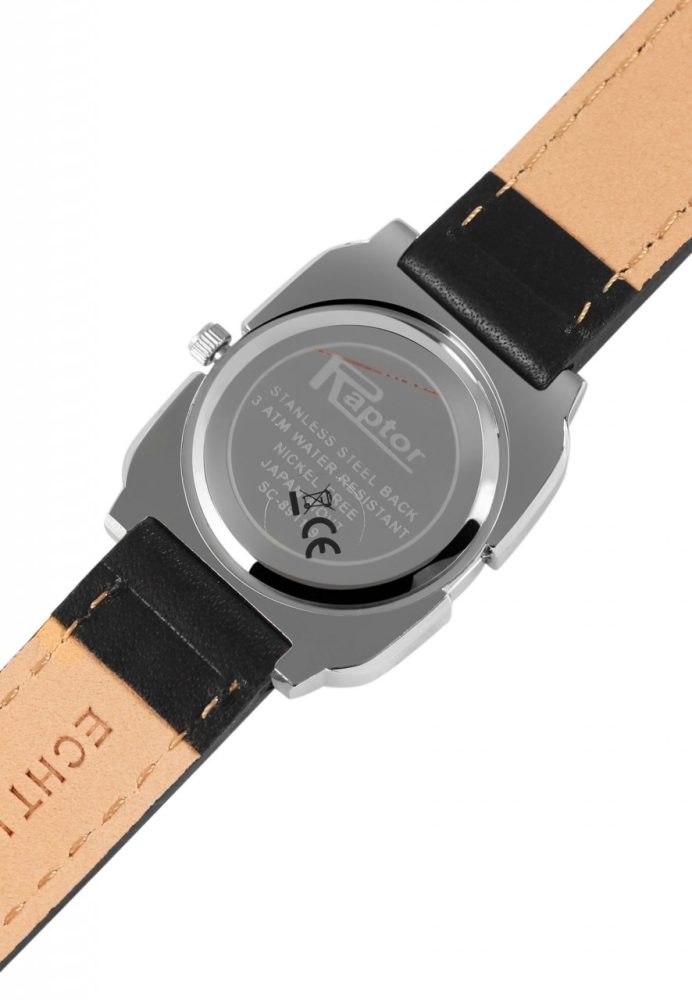 O relógio analógico feminino da marca Raptor possui movimento de quartzo de alta qualidade. O nome do modelo é RA158. A bracelete de pele genuína tem 16 mm de largura e abre com uma fivela. O comprimento total é de 21 cm. A caixa de metal com vidro mineral tem dimensões de 29 x 29 mm e altura de caixa de 10 mm. A tampa da caixa é feita de aço inoxidável. O relógio é testado com pressão de 3 ATM. Como acessórios para o seu produto você receberá: cartão de garantia, caixa original.