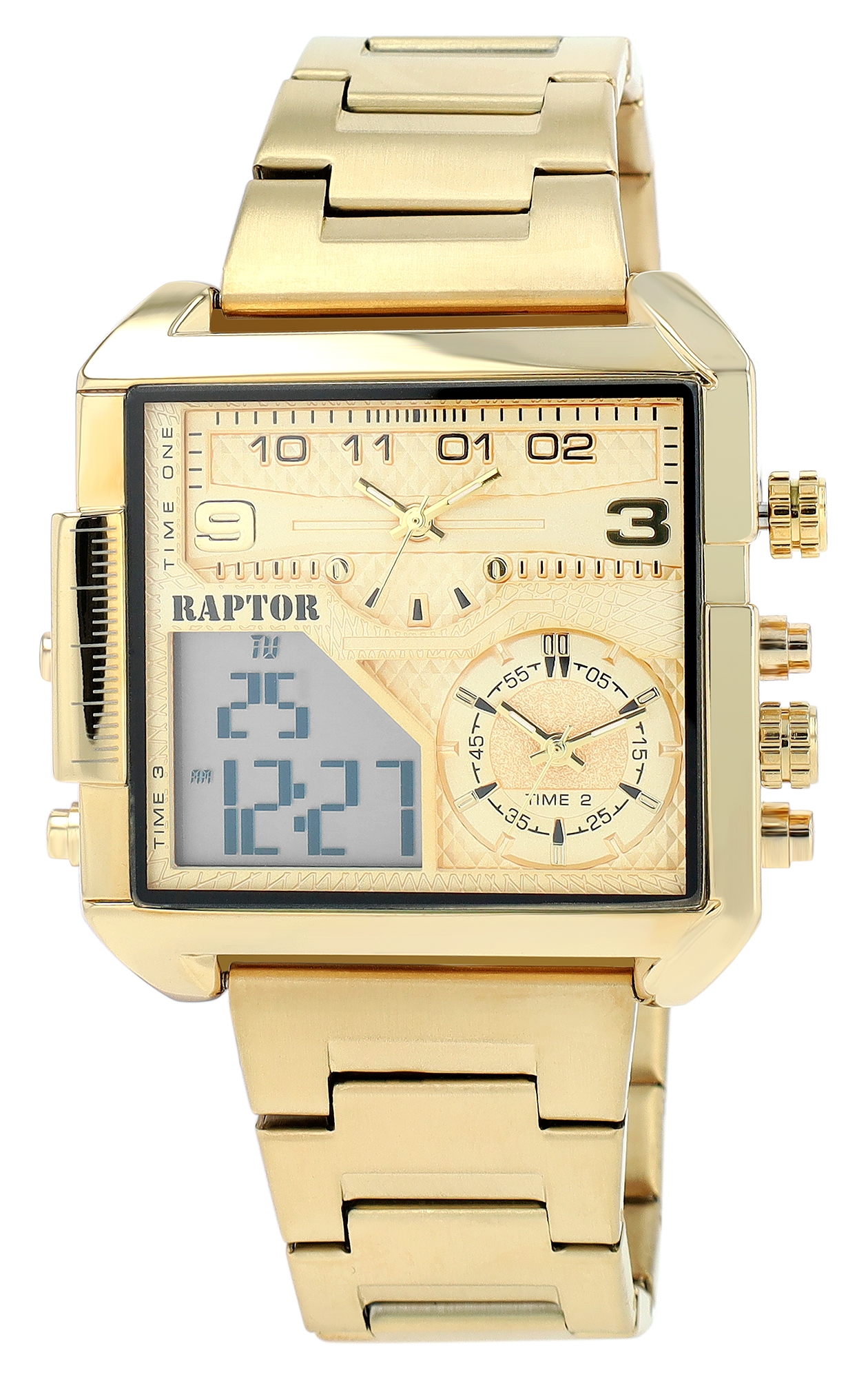 Relógio Raptor® Domian Homem com Bracelete em Aço Inoxidável 3 Fusos Horários
