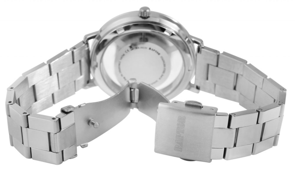 O relógio de pulso feminino analógico de 3 ponteiros da Raptor possui um movimento de quartzo de alta qualidade. A pulseira de aço inoxidável tem 18 mm de largura na alça e pode ser aberta e fechada com um fecho dobrável. O comprimento total do relógio é de 21,5 cm. A caixa de metal com vidro mineral tem um diâmetro de 38,5 mm e uma altura de 9 mm. O fundo da caixa é feito de uma borda estreita de aço inoxidável que contém um vidro mineral. Receberá um cartão de garantia e uma caixa original da marca Raptor.