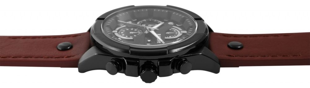 O relógio de pulso analógico masculino de 3 ponteiros da marca Raptor possui um movimento de quartzo de alta qualidade. A parte inferior da pulseira do relógio é feita de couro sintético e a parte superior é feita de couro genuíno. Tem 24 mm de largura na alça e pode ser aberto e fechado com uma fivela. O comprimento total do relógio é de 26 cm. A caixa de metal com moldura distinta e vidro mineral tem um diâmetro de 48 mm e uma altura de 12 mm. O modelo masculino também possui display de data às três horas. Além disso, o mostrador está equipado com um visual de cronógrafo, o que confere ao relógio moderno um visual esportivo. O fundo da caixa é feito de aço inoxidável e o relógio tem resistência à água de 3 bar. Os ponteiros revestidos com Superluminova facilitam a leitura das horas mesmo no escuro. Como acessório do seu produto você receberá um cartão de garantia…