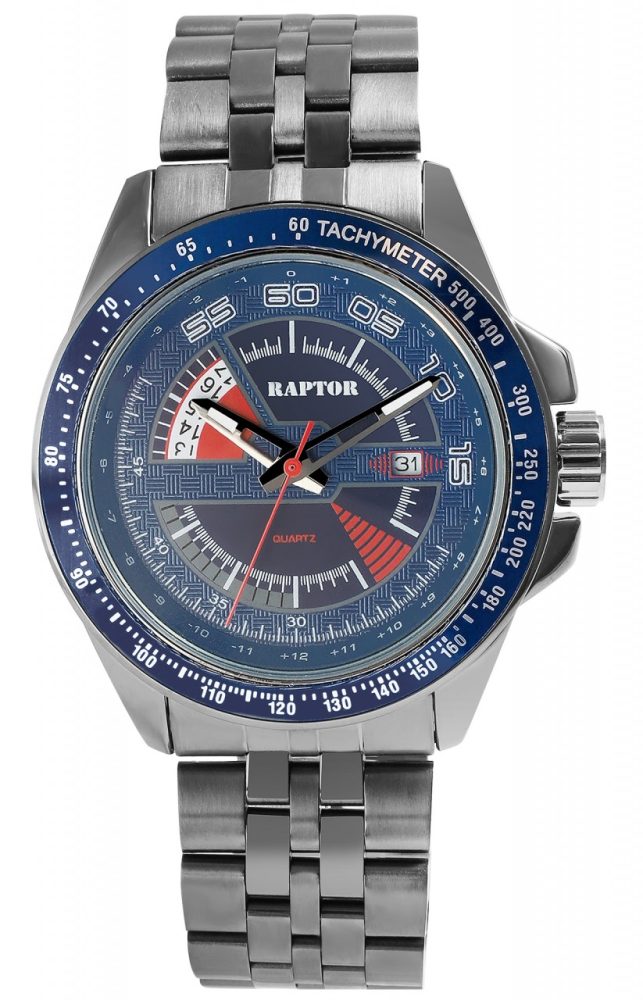 Descubra este relógio para homem da marca Raptor, bem como muitos outros relógios na nossa loja grossista de relógios, jóias e muito mais! O relógio Raptor para homem com bracelete de elos é uma sinfonia de materiais nobres e um design fascinante. Com um comprimento total de 23 cm e um impressionante diâmetro de caixa de 43 mm, é uma afirmação poderosa no pulso que não só garante uma cronometragem precisa, como também realça na perfeição o estilo pessoal dos seus clientes. A altura da caixa de 10 mm confere ao relógio uma presença impressionante, enquanto a largura da bracelete de 22 mm acentua o seu efeito elegante. A caixa metálica com vidro mineral e uma tampa da caixa em…
