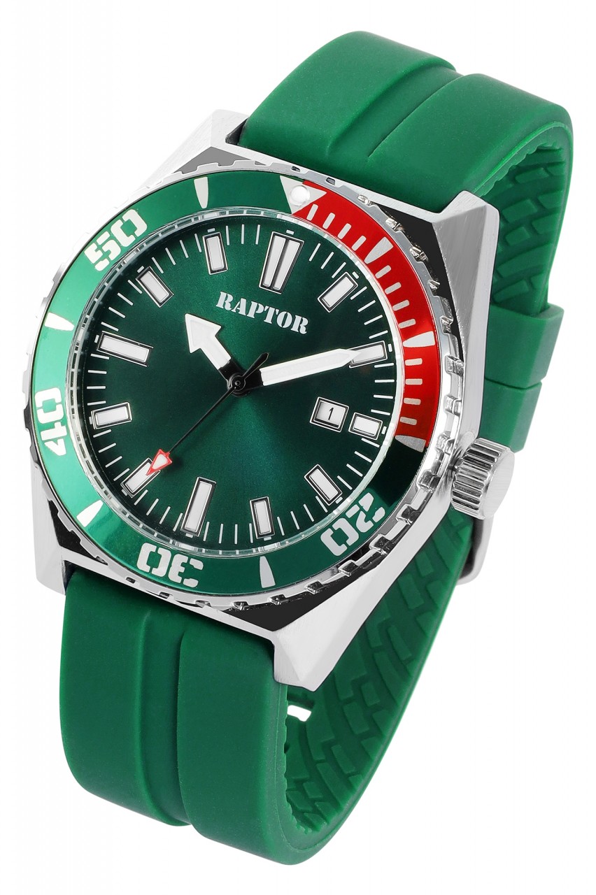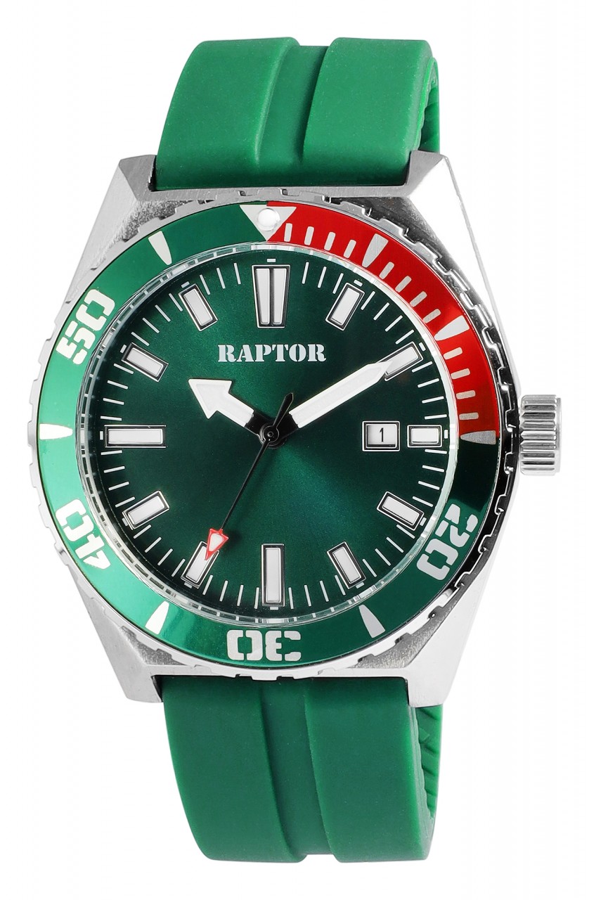 Este relógio para homem da marca Raptor é uma obra-prima visionária que espera por si na nossa loja de relógios por grosso. Este relógio desportivo para homem combina uma funcionalidade inigualável com um design poderoso que acompanhará fielmente o utilizador em todas as aventuras selvagens. O relógio Raptor para homem com bracelete de silicone é um tributo ao dinamismo da vida moderna. Com um comprimento total de 25 cm e um diâmetro de caixa robusto de 42 mm, é uma afirmação clara no pulso. A altura da caixa de 11 mm e a largura da bracelete de 22 mm conferem ao relógio uma expressão poderosa e fazem dele o companheiro perfeito para actividades de todos os tipos. Este relógio desafia os elementos com uma resistência à água de 5 bar, tornando-o o parceiro ideal para desafios desportivos e viagens de descoberta ousadas. A caixa com acabamento mate e luneta metálica rotativa …