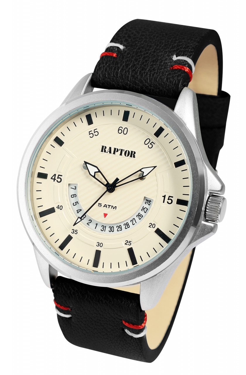 Relógio Raptor ® Semias Homem com Bracelete em Pele Genuína e Exibição de Data