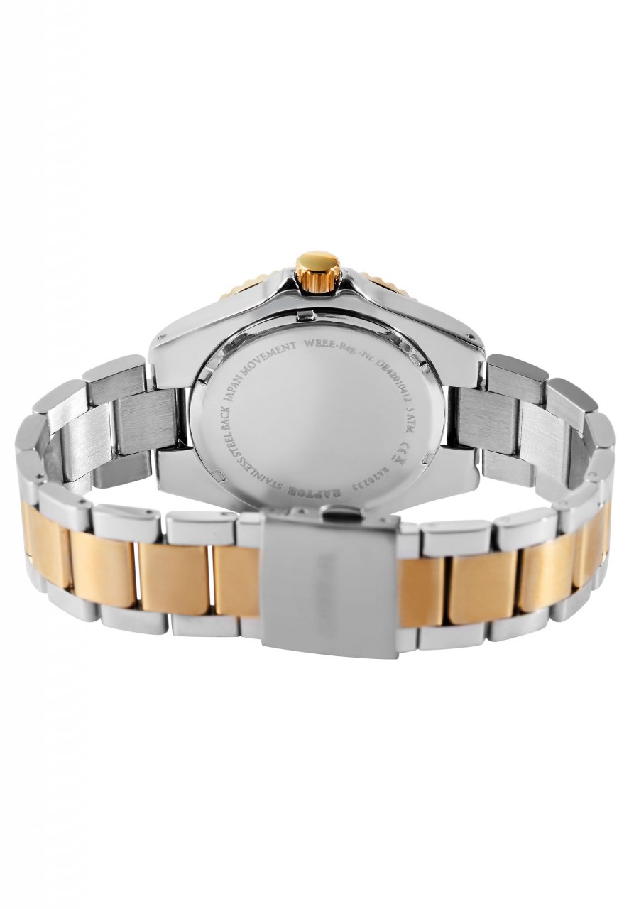 O relógio de pulso analógico de 3 ponteiros para homem da marca Raptor possui um movimento de quartzo de alta qualidade. A bracelete de elos em aço inoxidável tem 20 mm de largura na extremidade e pode ser aberta e fechada com um fecho desdobrável em aço inoxidável. O comprimento total do relógio é de 22 cm. A caixa metálica com vidro mineral tem um diâmetro de 43 mm e uma altura de 11 mm. O relógio possui também uma indicação da data às três horas, que está adicionalmente equipada com uma lente de aumento no vidro. O fundo da caixa é feito de aço inoxidável e o relógio de homem é também resistente à água até 3 bar. Os…
