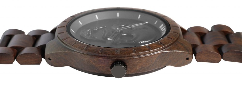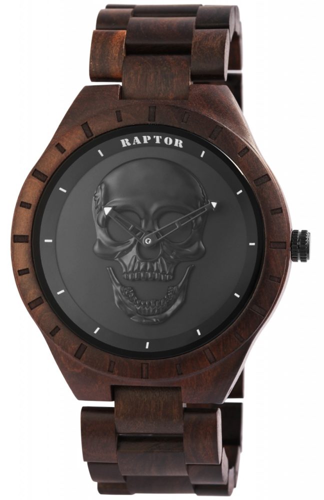 O relógio de pulso analógico de 2 ponteiros para homem da marca Raptor possui um movimento de quartzo Miyota 2035 de alta qualidade. A bracelete de sândalo castanho escuro tem 13 mm de largura na alça. Tem 26 mm de largura e pode ser aberto e fechado com um fecho dobrável em aço inoxidável prateado. O comprimento total do relógio é de 25 cm. A caixa em sândalo castanho escuro com vidro mineral tem um diâmetro de 52 mm e uma altura de 12 mm. O fundo da caixa também é feito de sândalo. O material leve significa que pode ser perfeitamente ajustado ao pulso e é muito confortável de usar.