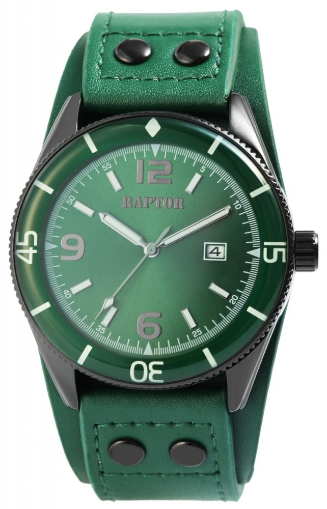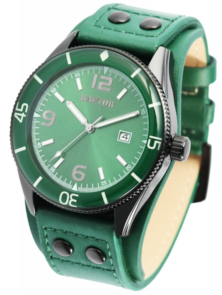 O relógio analógico masculino de 3 ponteiros da marca Raptor possui um movimento de quartzo preciso e de alta qualidade. A bracelete de pele genuína tem 24 mm de largura na alça e pode ser aberta e fechada usando uma fivela de aço inoxidável. Devido à base da bracelete, o visual do relógio se destaca e evita-se o contato direto entre a caixa do relógio e a pele, tornando este relógio ideal para peles sensíveis. O comprimento total do relógio é de 26 cm. A caixa de aço inoxidável com moldura esportiva tem um diâmetro de 46 mm e uma altura de 13 mm. O fundo da caixa também é feito de aço inoxidável. O mostrador claro com índices de linha permite ler a hora atual de forma rápida e fácil.