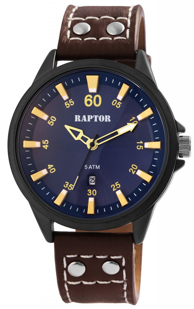 Relógio masculino RAPTOR com pulseira de couro verdadeiro