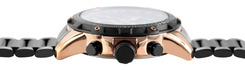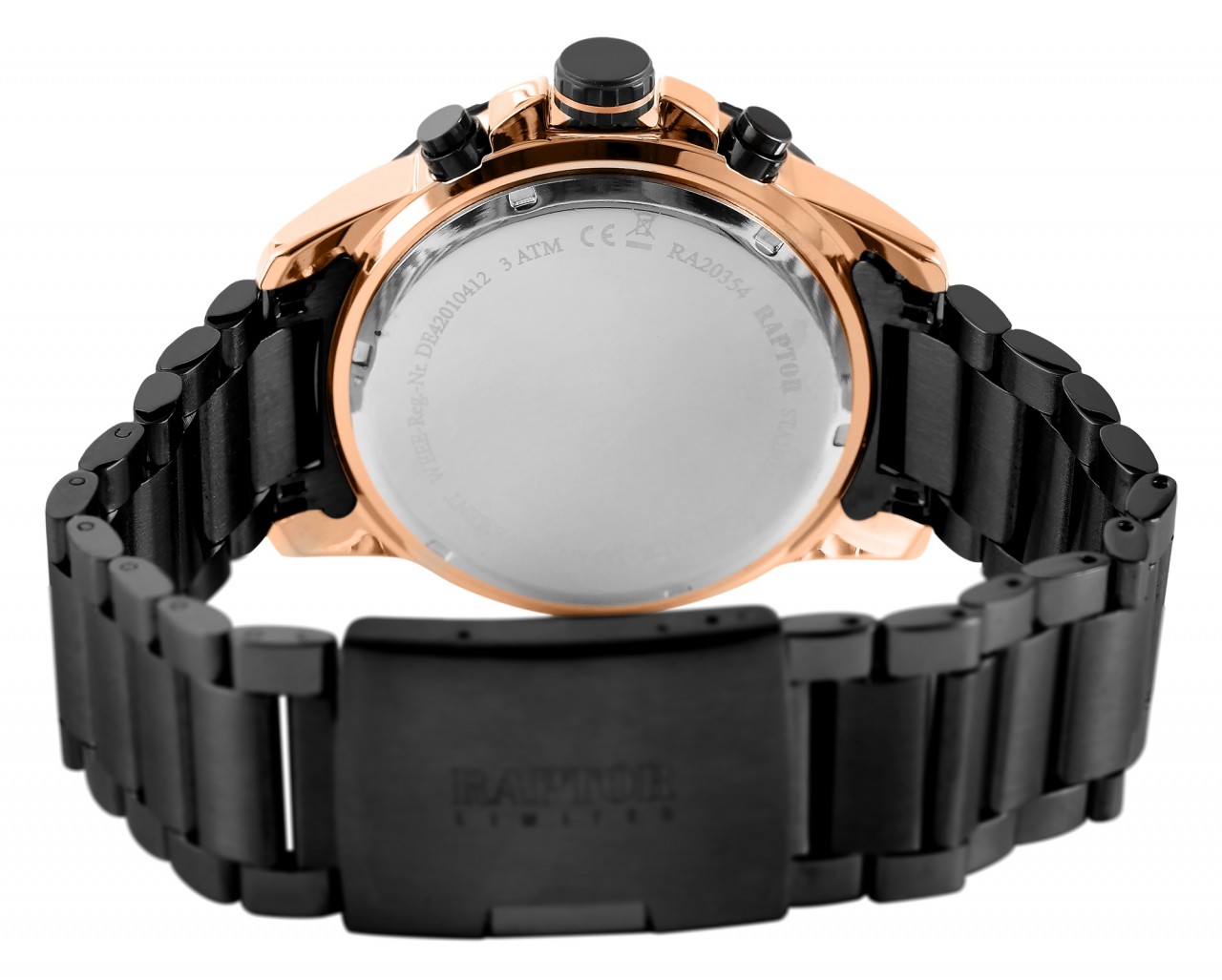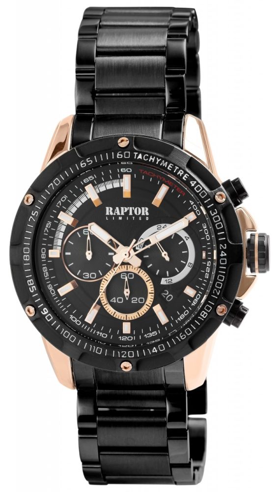 O Raptor Limited Chronograph “Omran” impressiona não só pelo seu design marcante, mas também pela sua funcionalidade. A peça central deste relógio de homem é o movimento de quartzo de alta qualidade, que não só representa uma precisão inigualável, como também garante fiabilidade e longevidade. O mostrador analógico com três ponteiros e índices graduados, bem como três totalizadores às três, seis e nove horas, conferem ao cronógrafo uma estética clara e de fácil leitura. A bracelete de elos em aço inoxidável não é apenas uma expressão de robustez, mas também de um visual requintado. O comprimento total de 24 cm garante um ajuste confortável e os elementos encurtáveis permitem personalizar a bracelete. A caixa metálica tem um aspeto marcante com um diâmetro de 46 mm e uma altura de 14 mm. O vidro mineral protege o mostrador,…