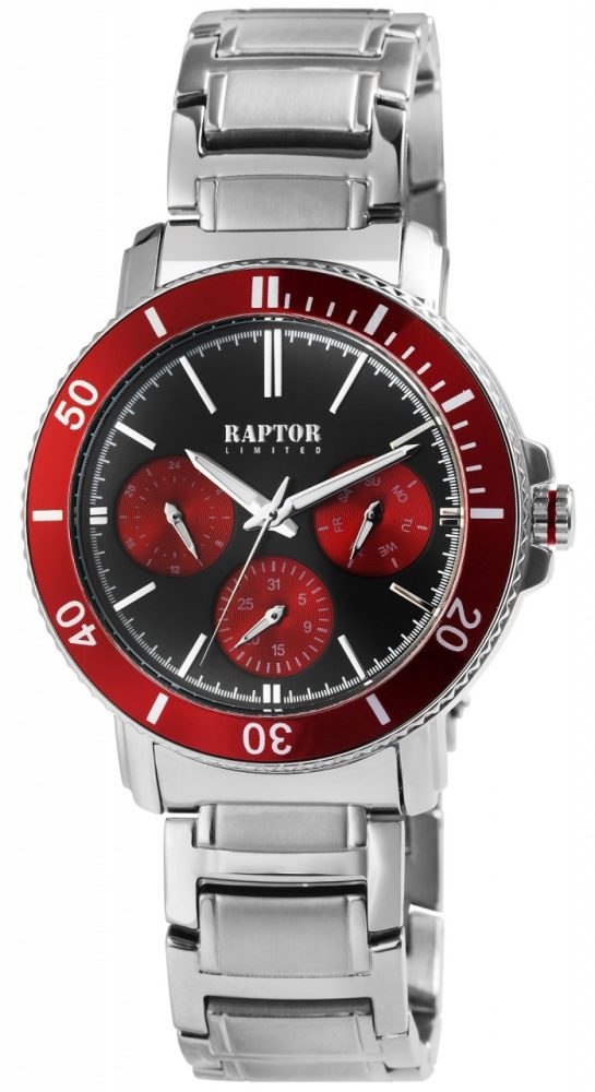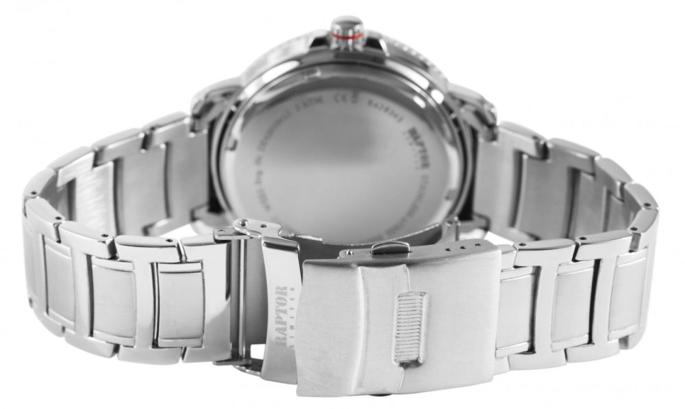 O relógio de pulso analógico masculino de 3 ponteiros da marca Raptor possui um movimento de quartzo de alta qualidade. A pulseira de aço inoxidável tem 20 mm de largura na alça e pode ser aberta e fechada usando um fecho dobrável de aço inoxidável. O comprimento total do relógio é de 24,5 cm. A caixa de metal com vidro mineral tem um diâmetro de 42 mm e uma altura de 11 mm. O relógio também possui exibição de 24 horas, exibição de data e exibição do dia da semana. O fundo da caixa é feito de aço inoxidável e o relógio tem resistência à água de 3 Bar. Os ponteiros revestidos com Superluminova facilitam a leitura das horas mesmo no escuro. Como acessórios do seu produto, você receberá um cartão de garantia e uma caixa original da marca Raptor.