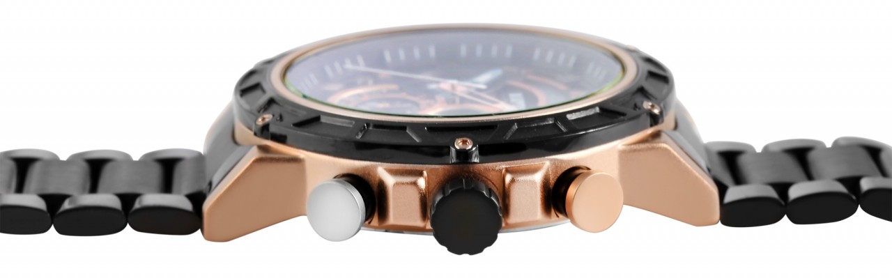 O Raptor Limited Chronograph “Rakan” impressiona não só pelo seu design marcante, mas também pela sua funcionalidade. Com um cronógrafo que combina a exibição da data e do dia, este relógio torna-se um companheiro indispensável. O coração deste relógio masculino é o movimento de quartzo de alta qualidade, que não só representa uma precisão inigualável, mas também garante confiabilidade e longevidade. O display analógico com três ponteiros e divisões de índice de linha, incluindo um algarismo arábico nas doze, confere ao cronógrafo uma estética clara e fácil de ler. A pulseira de elos em aço inoxidável não é apenas uma expressão de robustez, mas também de um visual sofisticado. O comprimento total de 24 cm garante um ajuste confortável e os elementos encurtáveis ​​permitem que a pulseira seja ajustada individualmente.