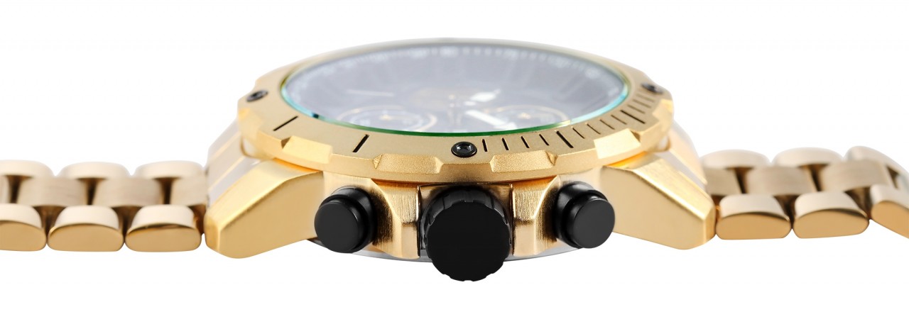 O Raptor Limited Chronograph "Kifah" impressiona não só pelo seu design marcante, mas também pela sua funcionalidade. O coração deste relógio masculino é o movimento de quartzo de alta qualidade, que não só representa uma precisão inigualável, mas também garante confiabilidade e longevidade. O display analógico com três ponteiros e divisão de índice de linha, bem como três totalizadores às seis, nove e doze horas conferem ao cronógrafo uma estética clara e de fácil leitura. A pulseira de elos em aço inoxidável não é apenas uma expressão de robustez, mas também de um visual sofisticado. O comprimento total de 24 cm garante um ajuste confortável e os elementos…