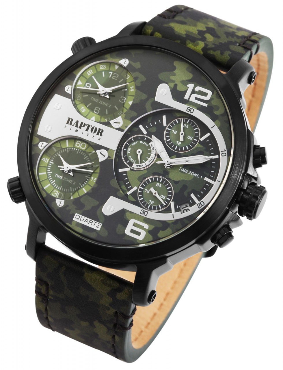 Relógio Raptor ® LIMITED Homem Multifuncional com Pulseira de Couro Genuíno com Costuras