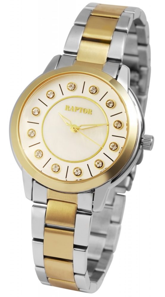 O relógio de pulso feminino analógico de 3 ponteiros da Raptor possui um movimento de quartzo de alta qualidade. A pulseira de aço inoxidável tem 16 mm de largura na alça e pode ser aberta e fechada com um fecho dobrável. O comprimento total do relógio é de 20,5 cm, mas pode ser ajustado conforme desejado graças aos elementos removíveis. O diâmetro da caixa é de 35 mm, a altura da caixa é de 9,5 mm. A tampa da caixa também é feita de aço inoxidável. O relógio também possui resistência à água de 3 ATM. Com este relógio feminino o foco está no mostrador. A bracelete de aço inoxidável brilhante forma uma transição tranquila para caixa do relógio e completa assim o quadro geral.